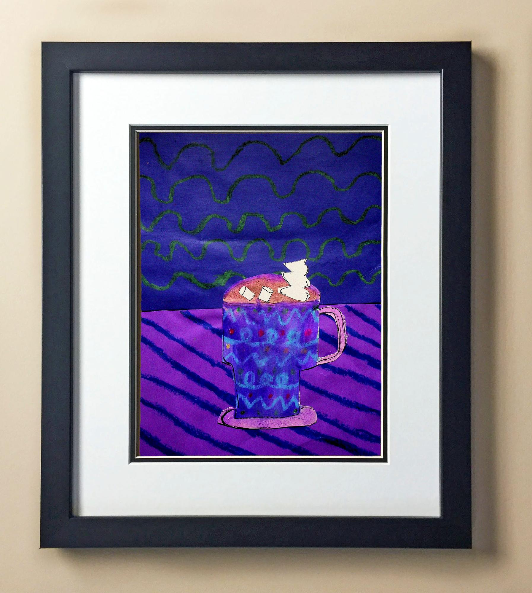 Included with the purchase is the Students Artwork, Frame, double matboard, shatter proof plexiglass, and a ready to hang backerboard with turnbuttons