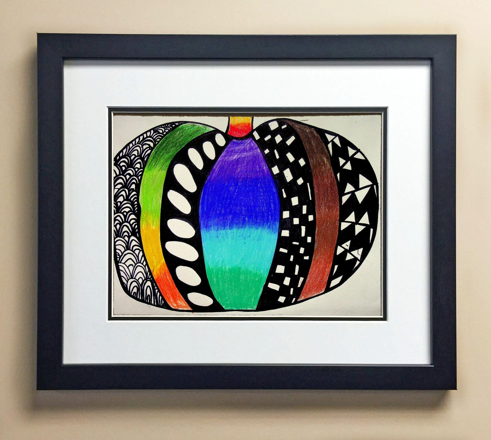 Included with the purchase is the Students Artwork, Frame, double matboard, shatter proof plexiglass, and a ready to hang backerboard with turnbuttons