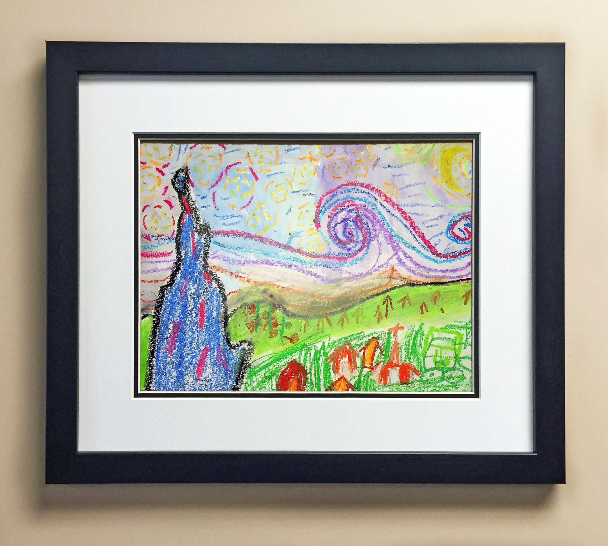 Included with the purchase is the Students Artwork, Frame, double matboard, shatter proof plexiglass, and a ready to hang backerboard with turnbuttons