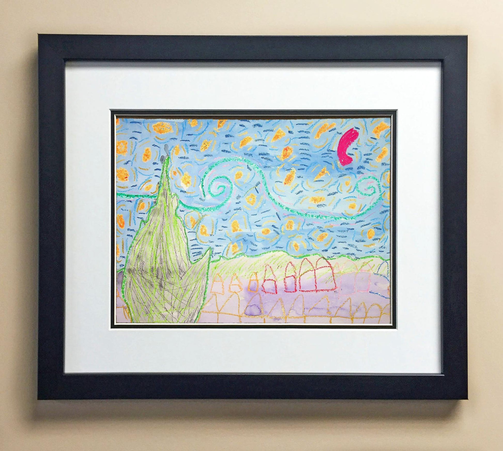 Included with the purchase is the Students Artwork, Frame, double matboard, shatter proof plexiglass, and a ready to hang backerboard with turnbuttons