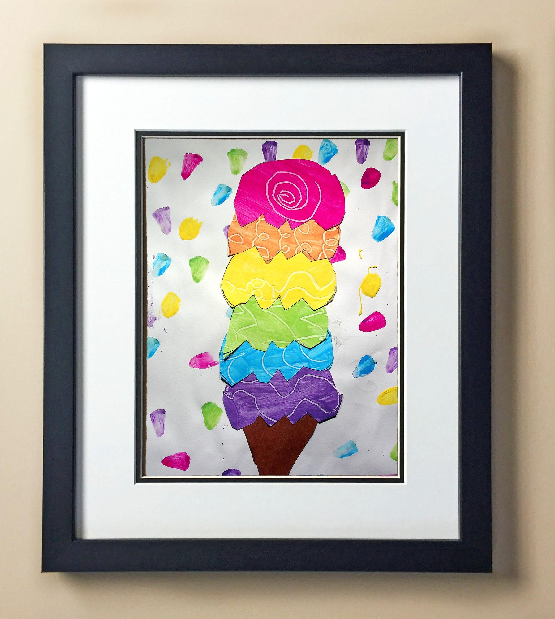 Included with the purchase is the Students Artwork, Frame, double matboard, shatter proof plexiglass, and a ready to hang backerboard with turnbuttons