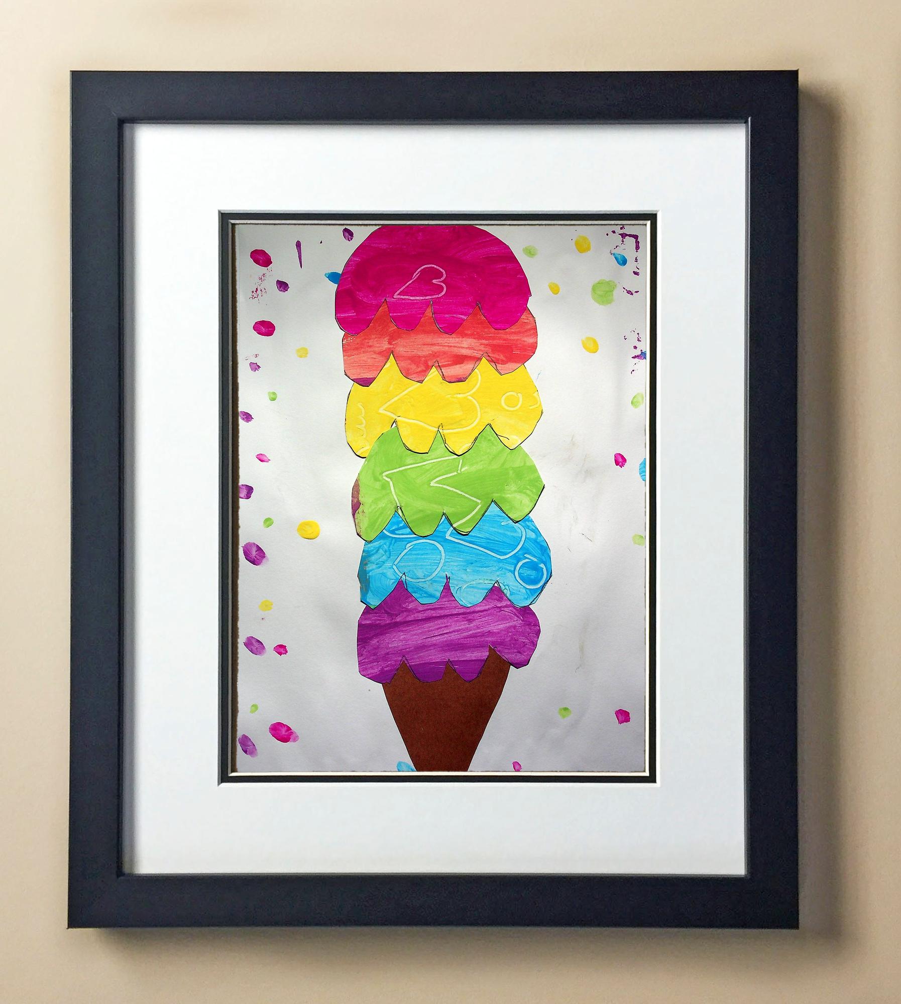 Included with the purchase is the Students Artwork, Frame, double matboard, shatter proof plexiglass, and a ready to hang backerboard with turnbuttons