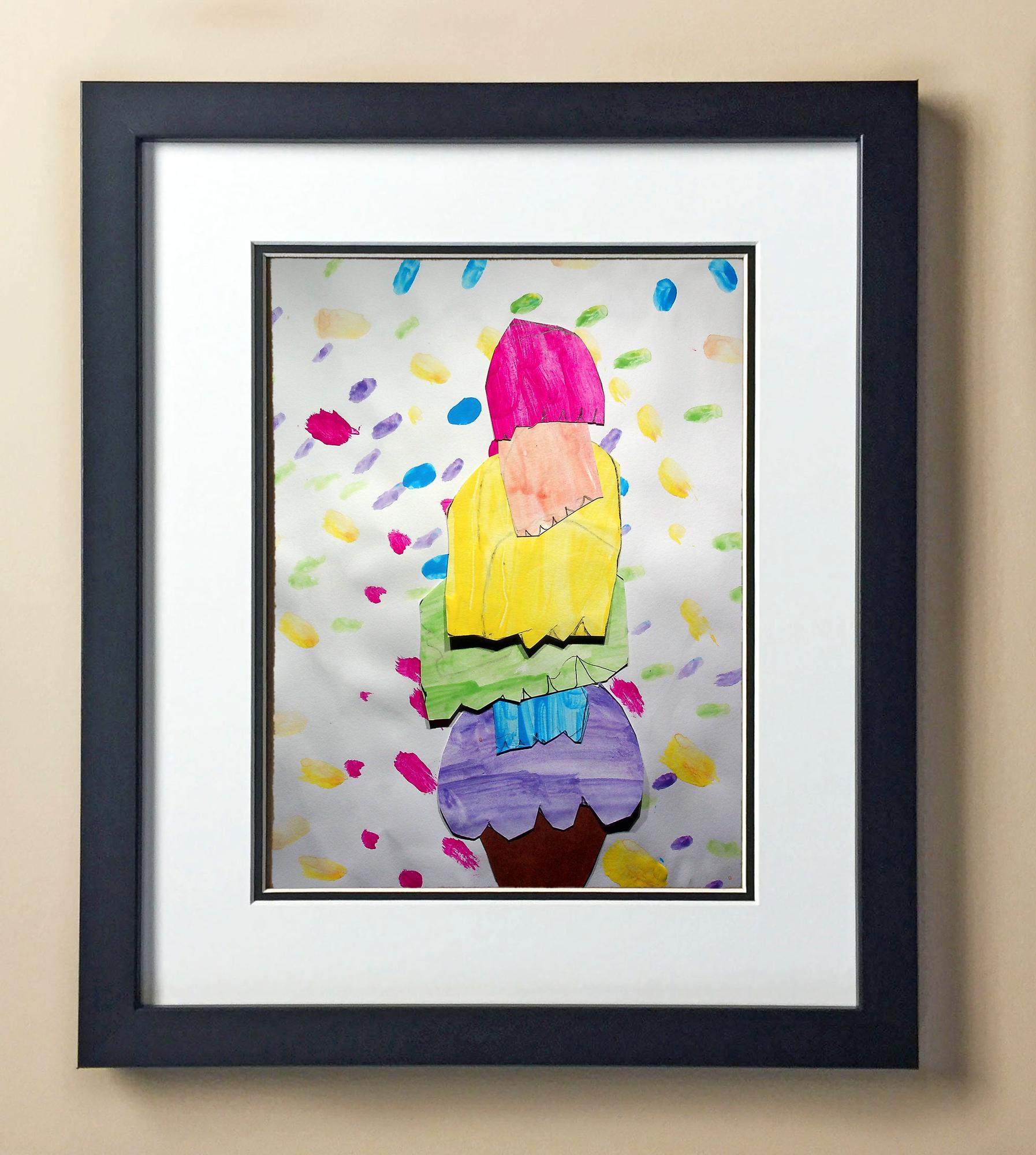 Included with the purchase is the Students Artwork, Frame, double matboard, shatter proof plexiglass, and a ready to hang backerboard with turnbuttons