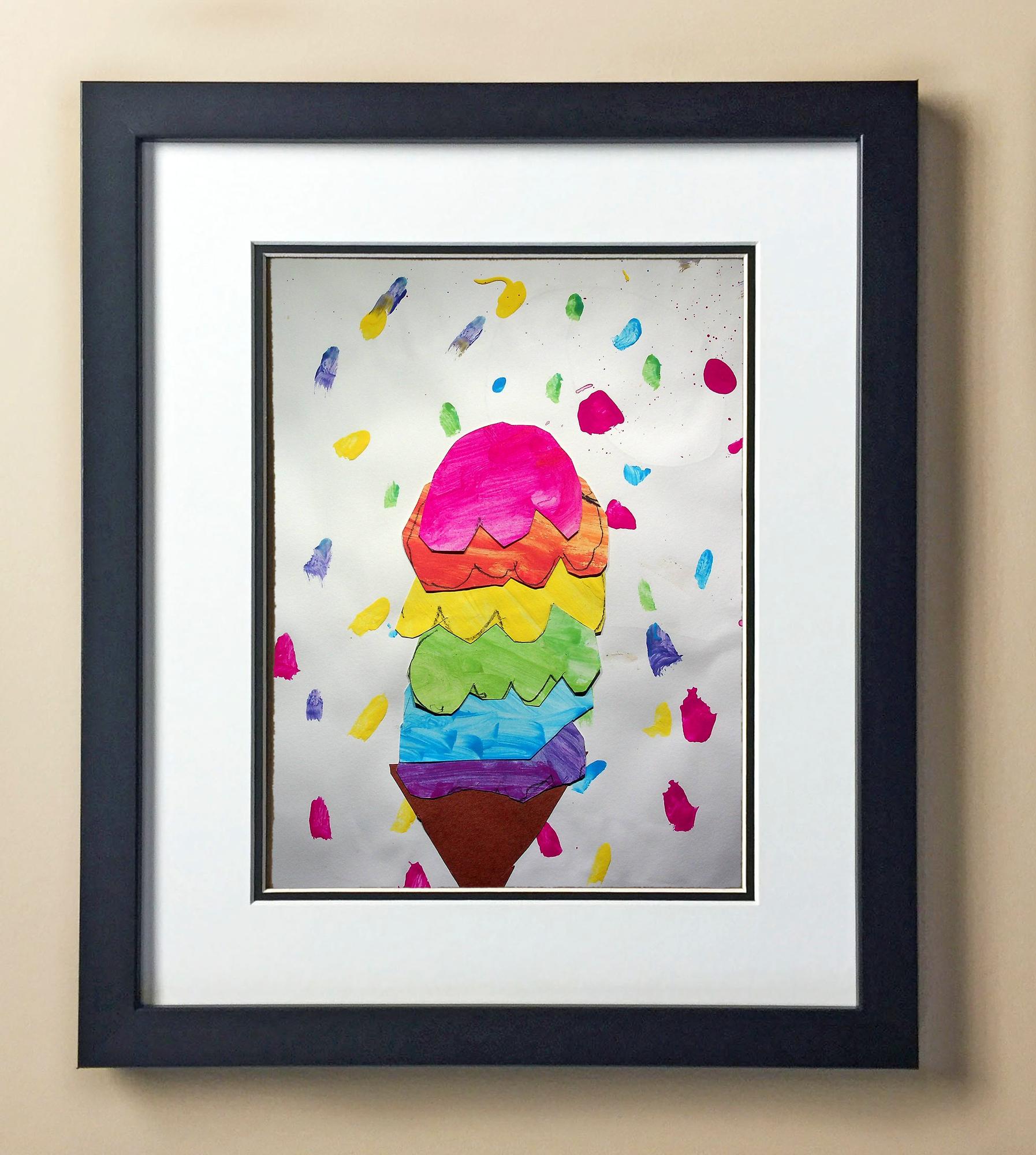 Included with the purchase is the Students Artwork, Frame, double matboard, shatter proof plexiglass, and a ready to hang backerboard with turnbuttons