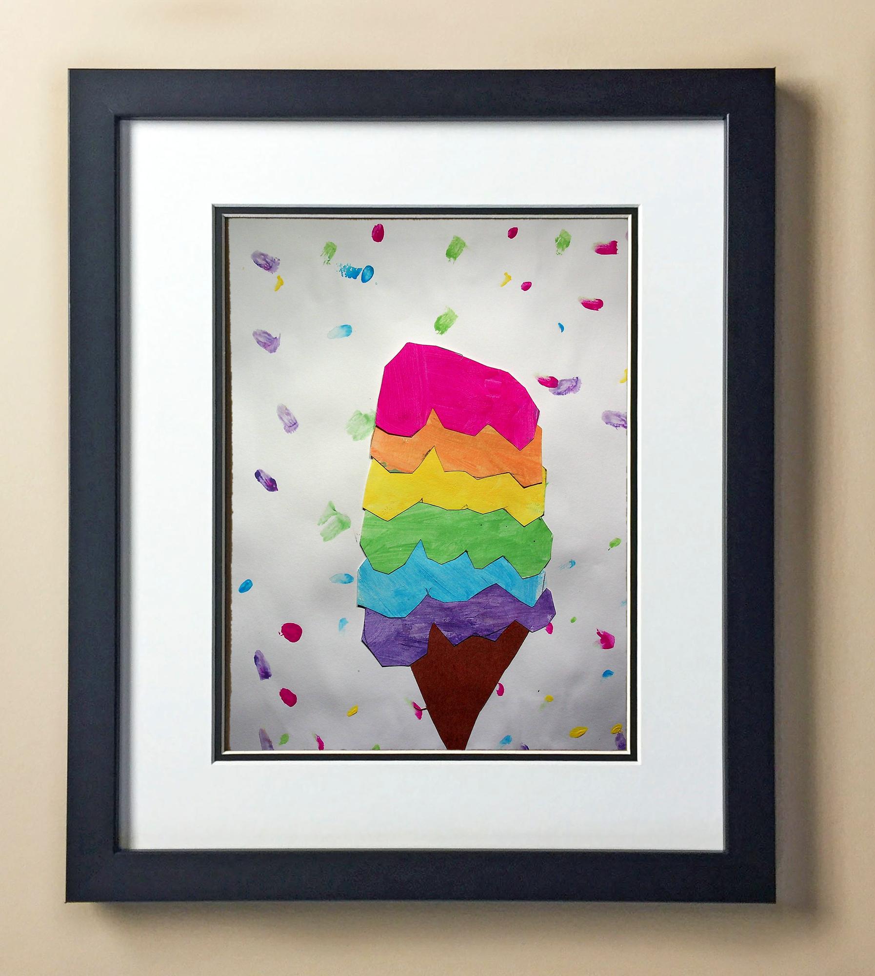 Included with the purchase is the Students Artwork, Frame, double matboard, shatter proof plexiglass, and a ready to hang backerboard with turnbuttons