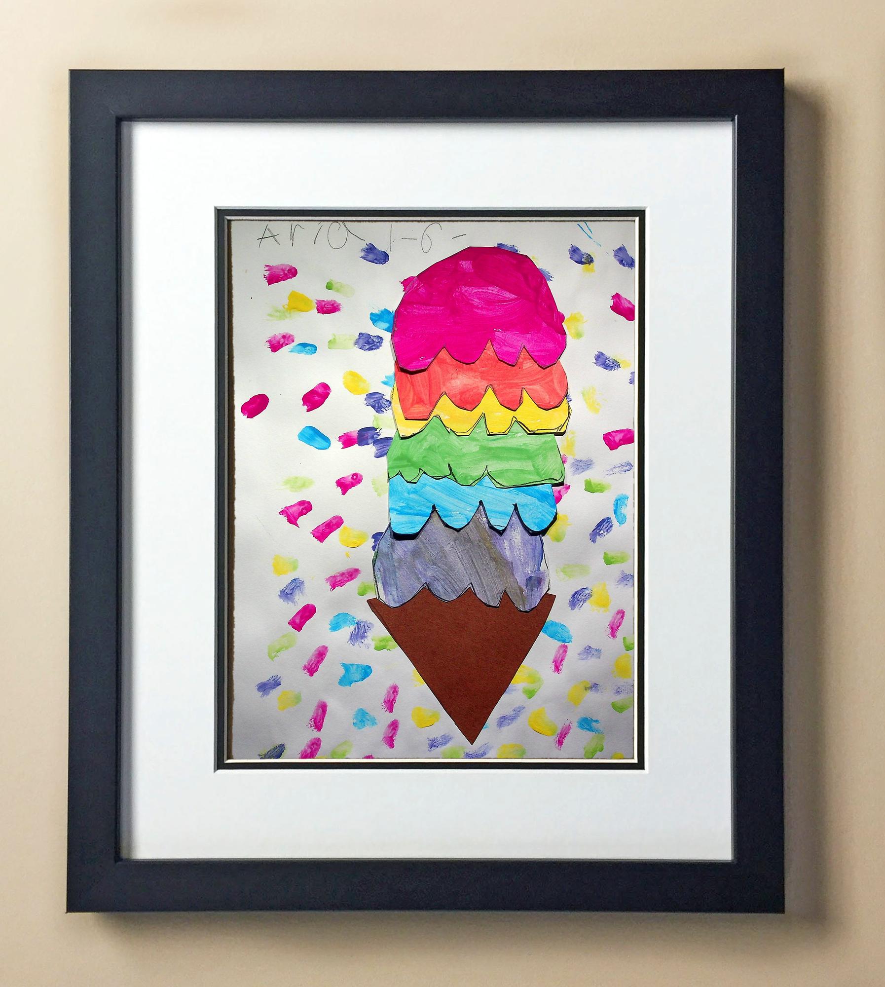 Included with the purchase is the Students Artwork, Frame, double matboard, shatter proof plexiglass, and a ready to hang backerboard with turnbuttons