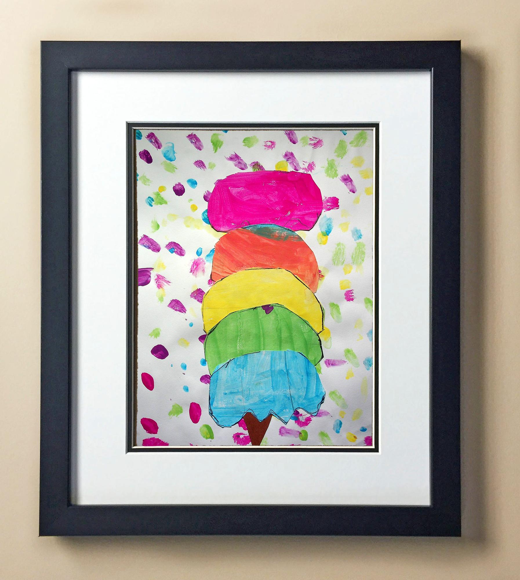 Included with the purchase is the Students Artwork, Frame, double matboard, shatter proof plexiglass, and a ready to hang backerboard with turnbuttons