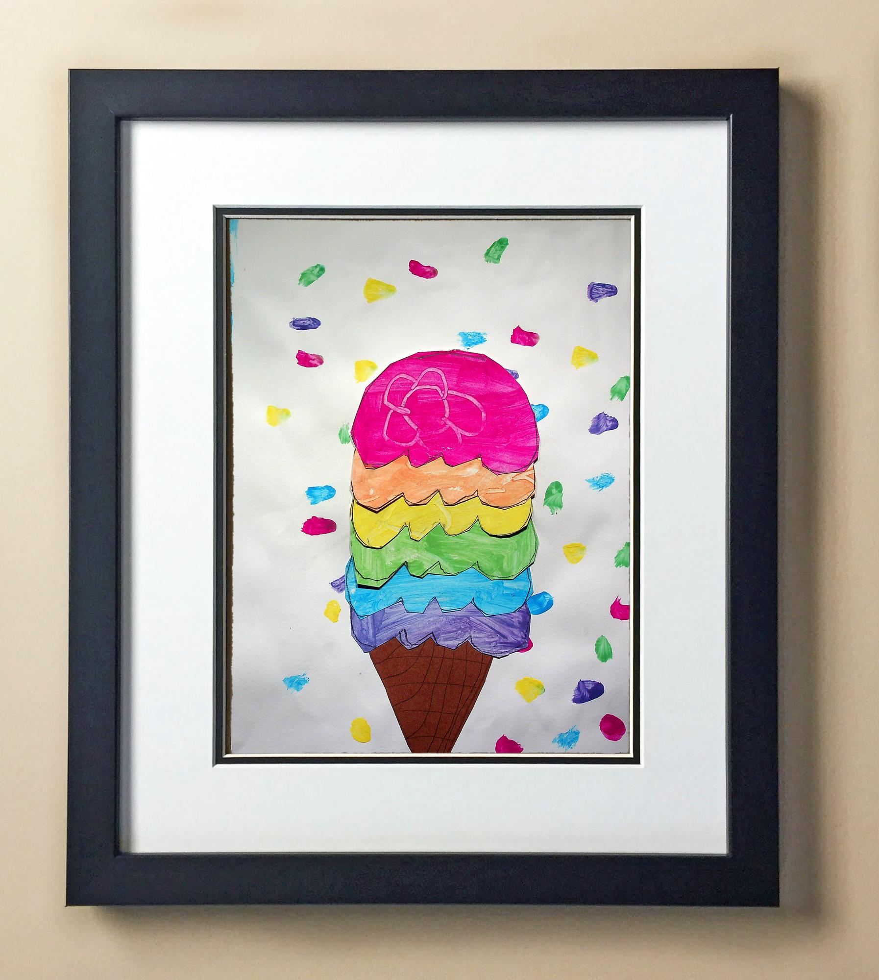 Included with the purchase is the Students Artwork, Frame, double matboard, shatter proof plexiglass, and a ready to hang backerboard with turnbuttons