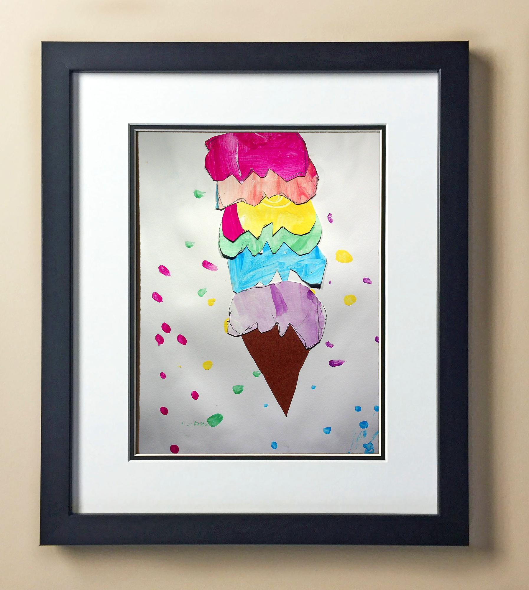 Included with the purchase is the Students Artwork, Frame, double matboard, shatter proof plexiglass, and a ready to hang backerboard with turnbuttons