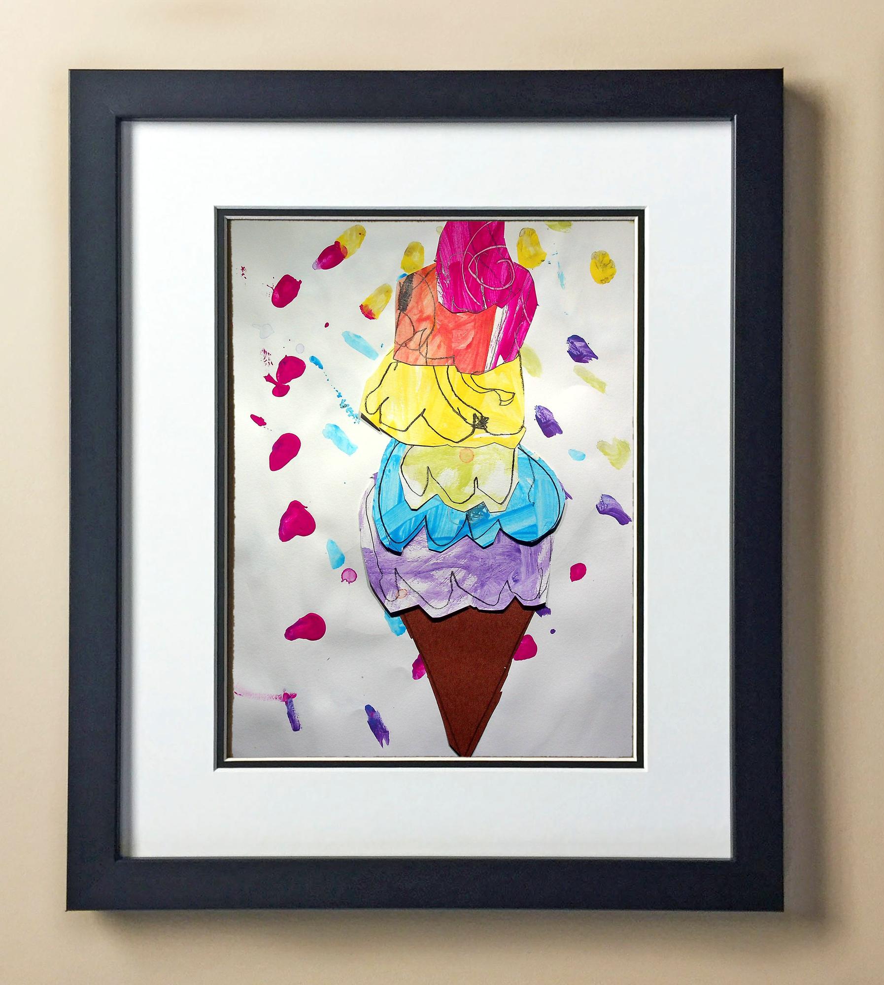 Included with the purchase is the Students Artwork, Frame, double matboard, shatter proof plexiglass, and a ready to hang backerboard with turnbuttons