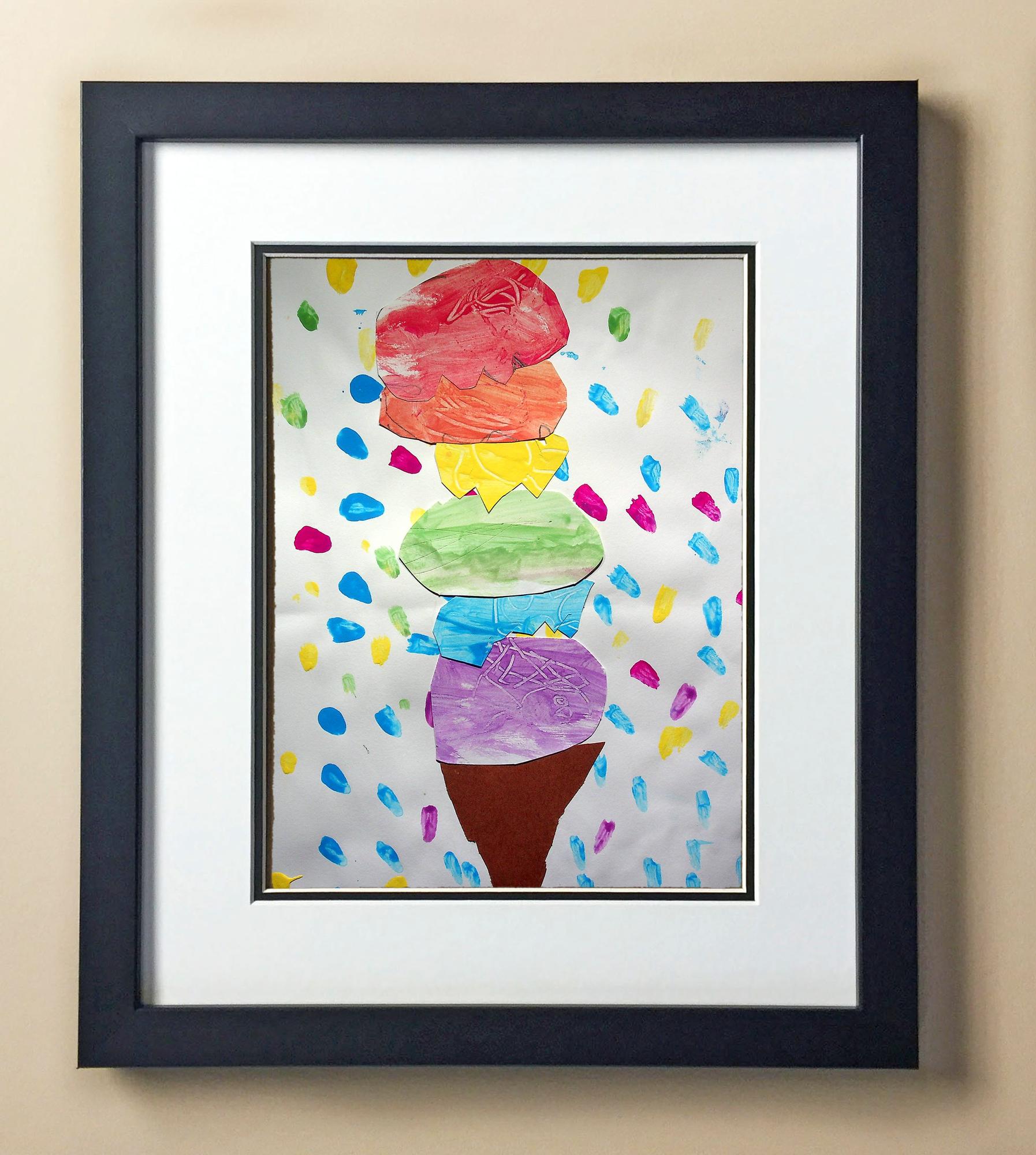 Included with the purchase is the Students Artwork, Frame, double matboard, shatter proof plexiglass, and a ready to hang backerboard with turnbuttons