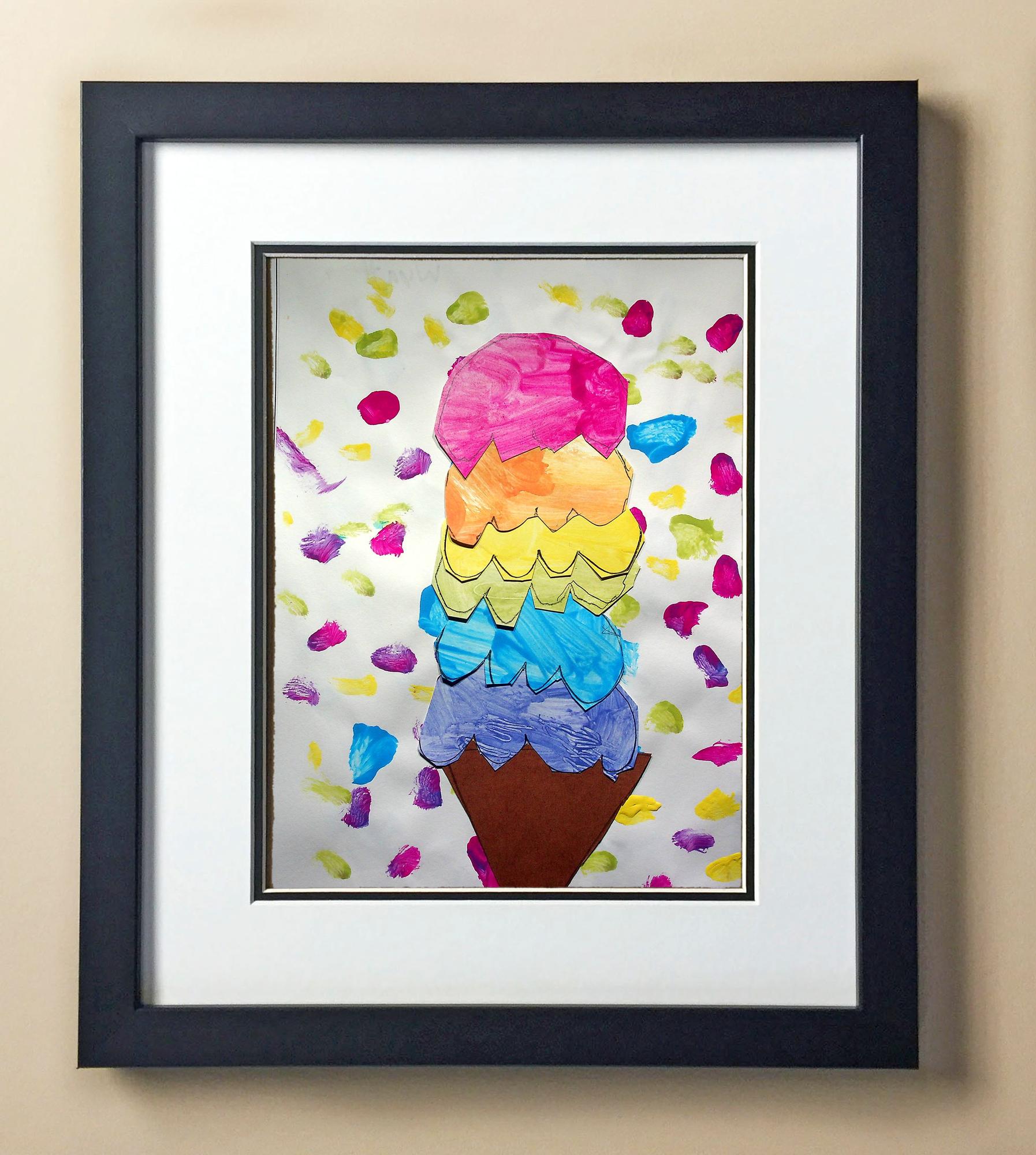 Included with the purchase is the Students Artwork, Frame, double matboard, shatter proof plexiglass, and a ready to hang backerboard with turnbuttons