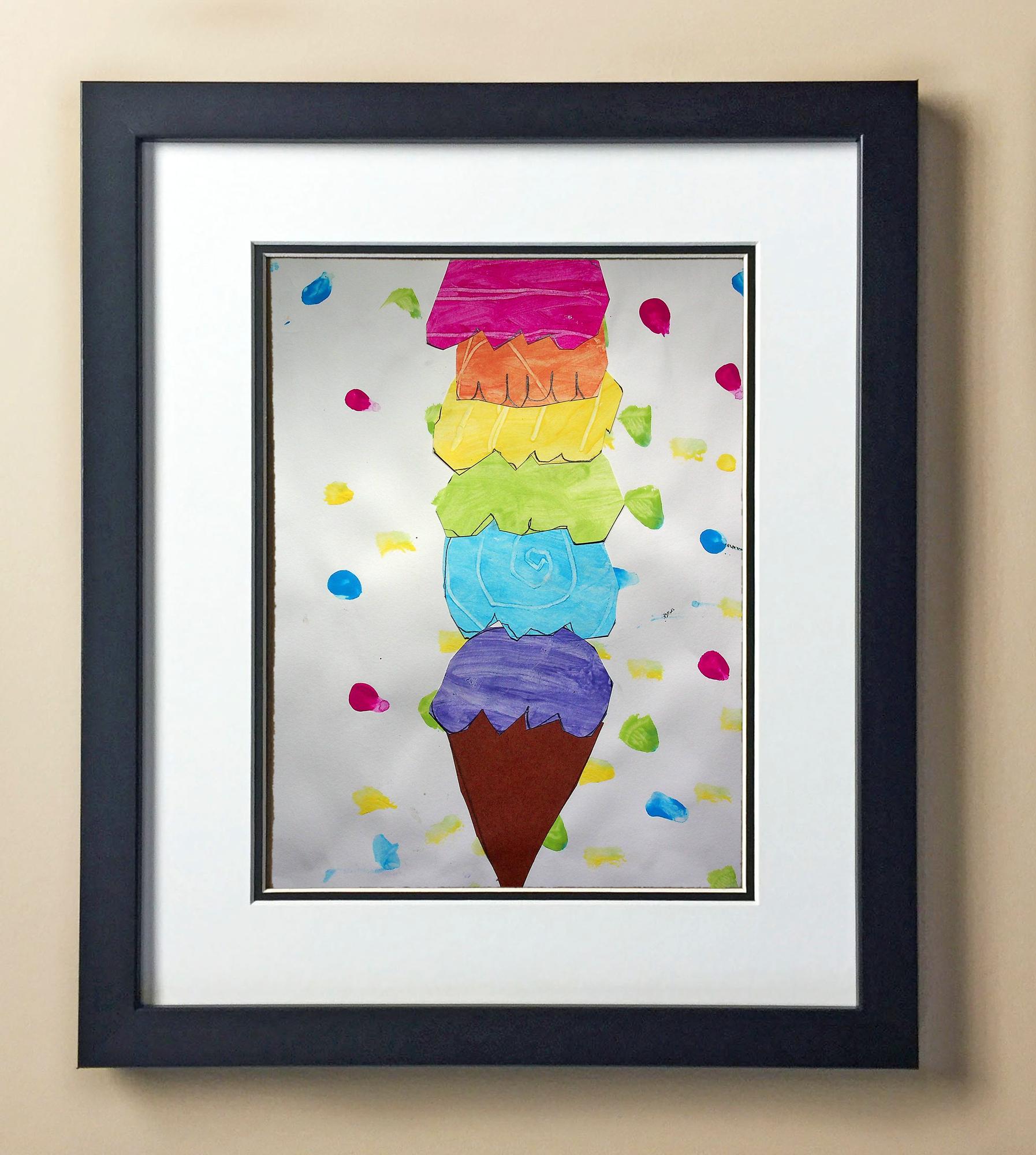 Included with the purchase is the Students Artwork, Frame, double matboard, shatter proof plexiglass, and a ready to hang backerboard with turnbuttons