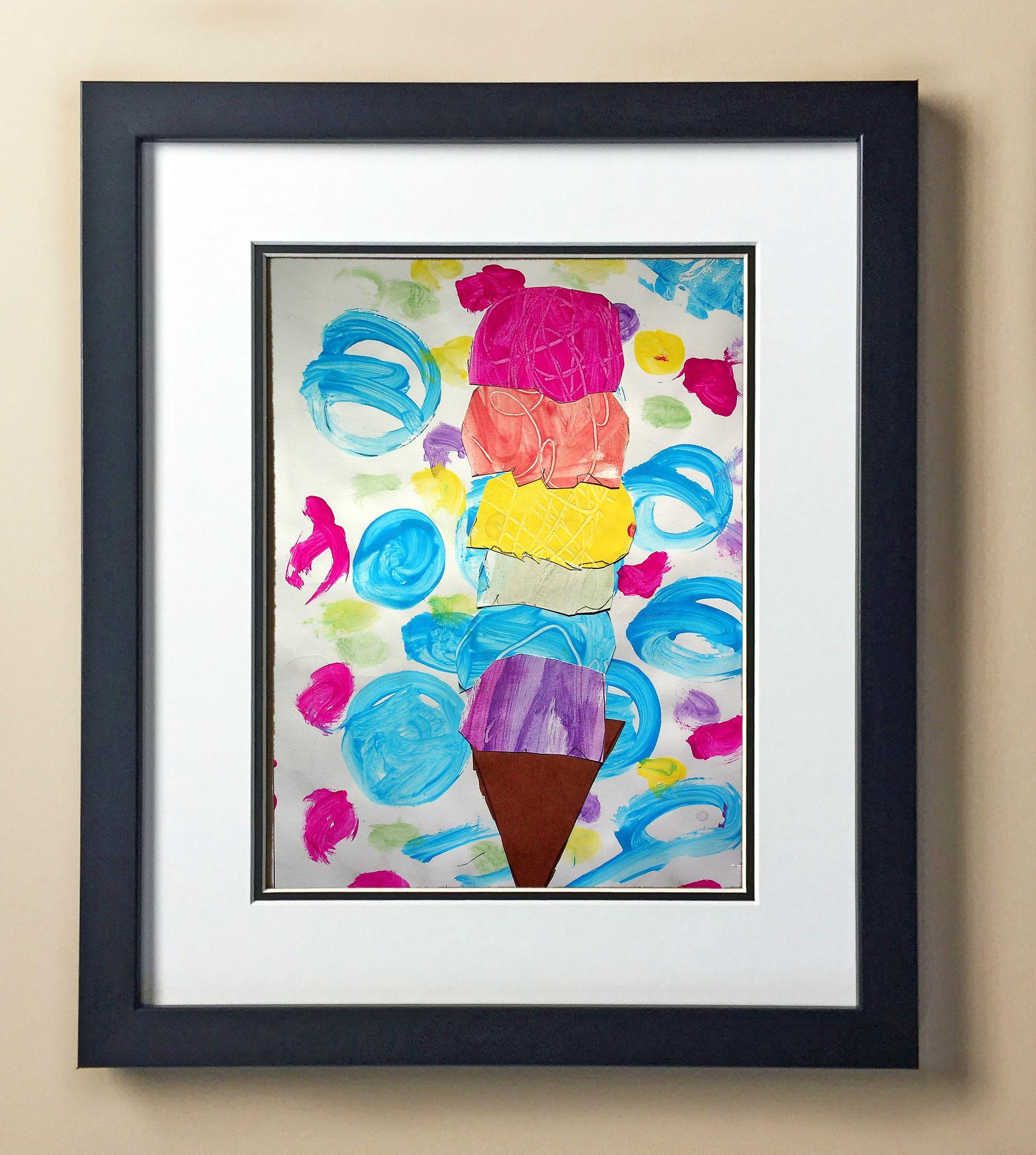 Included with the purchase is the Students Artwork, Frame, double matboard, shatter proof plexiglass, and a ready to hang backerboard with turnbuttons