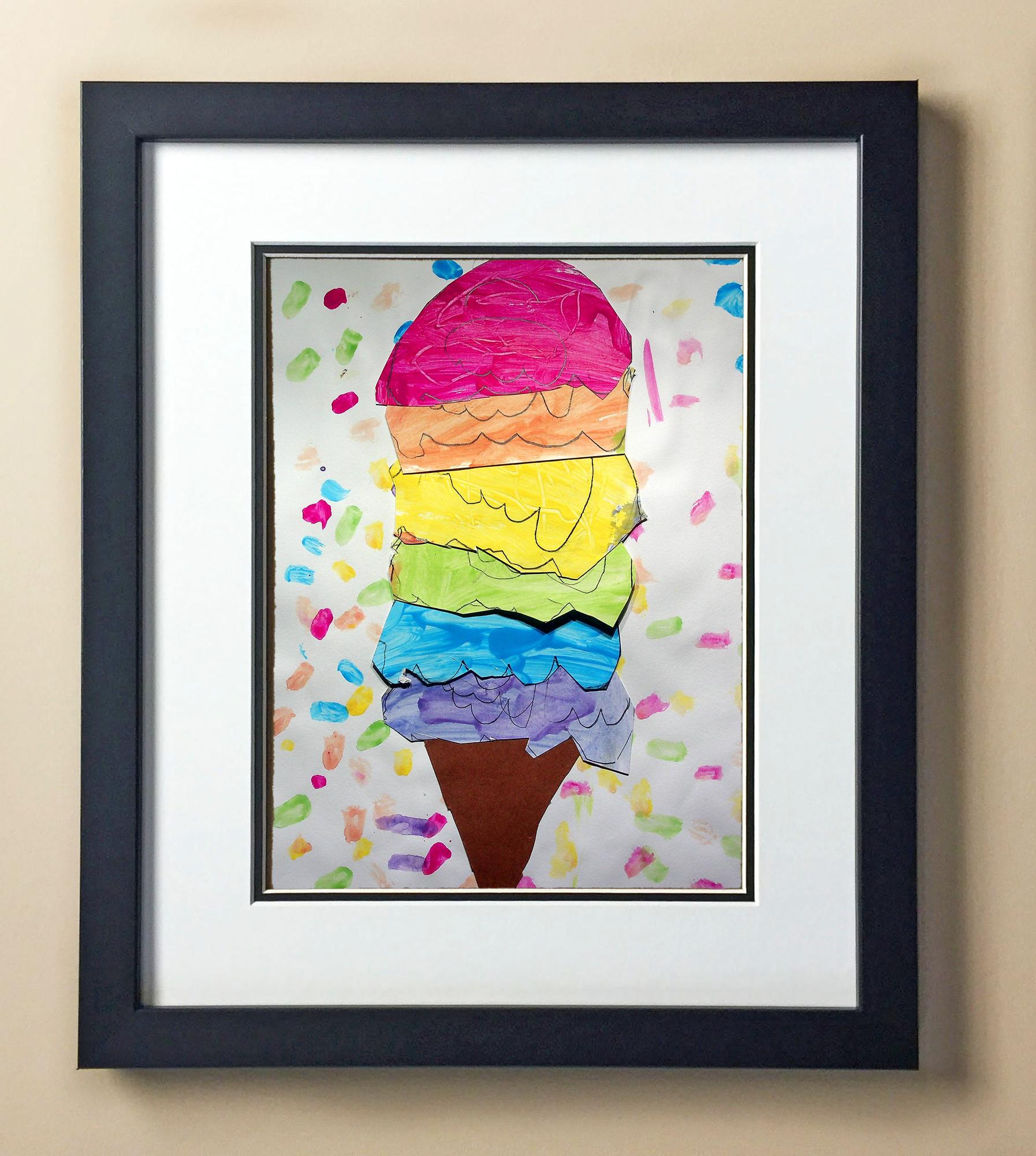 Included with the purchase is the Students Artwork, Frame, double matboard, shatter proof plexiglass, and a ready to hang backerboard with turnbuttons