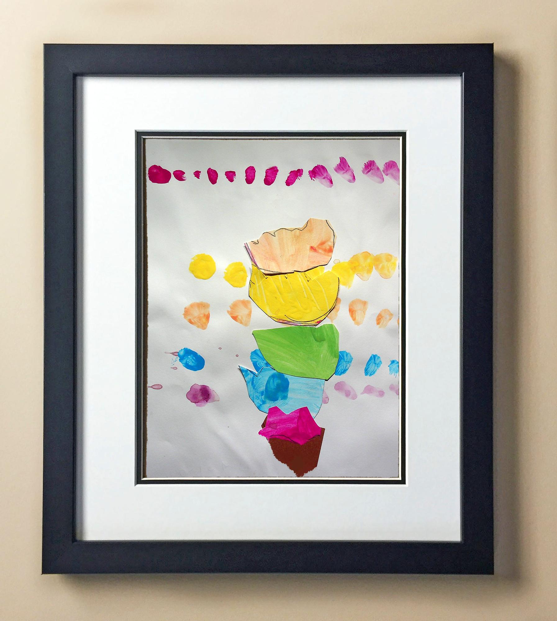 Included with the purchase is the Students Artwork, Frame, double matboard, shatter proof plexiglass, and a ready to hang backerboard with turnbuttons