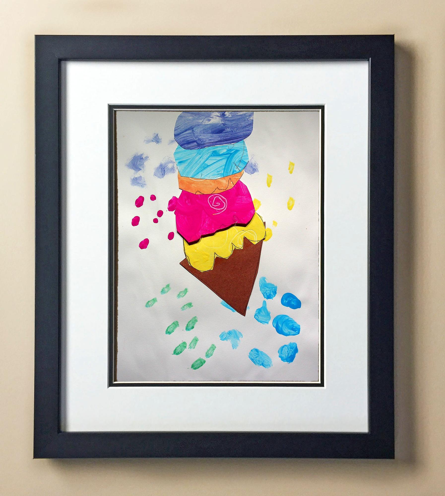Included with the purchase is the Students Artwork, Frame, double matboard, shatter proof plexiglass, and a ready to hang backerboard with turnbuttons