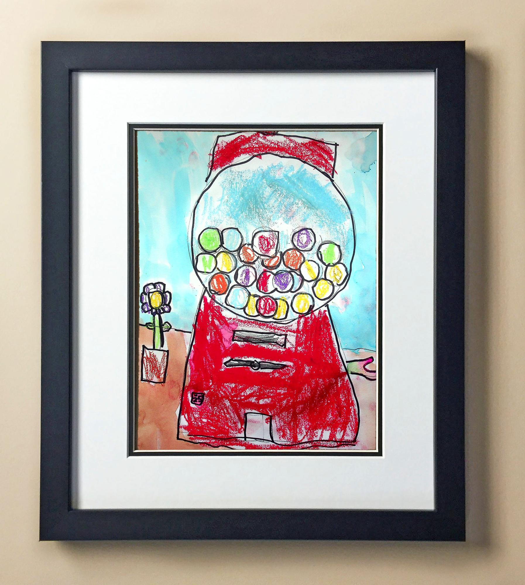Included with the purchase is the Students Artwork, Frame, double matboard, shatter proof plexiglass, and a ready to hang backerboard with turnbuttons