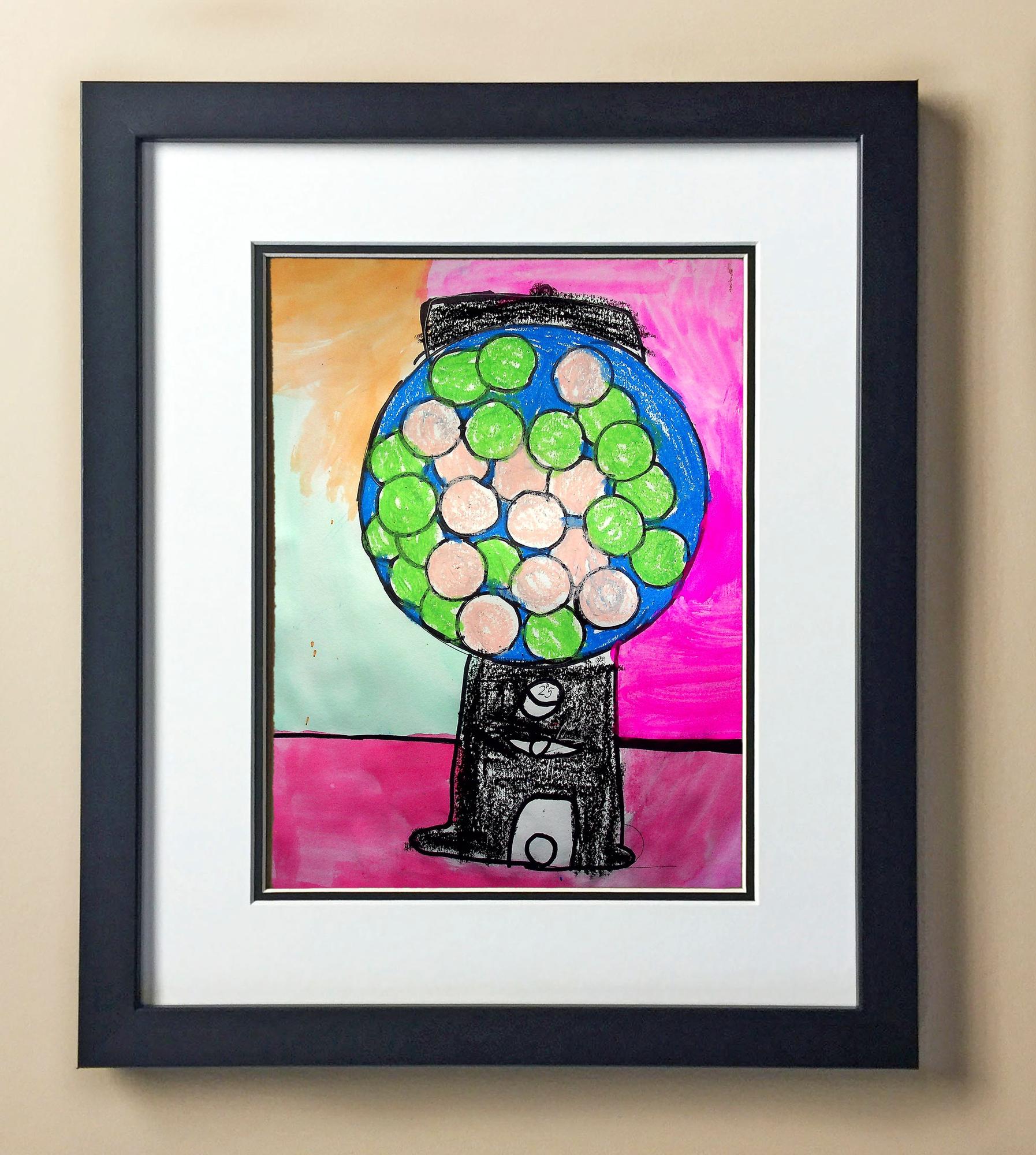Included with the purchase is the Students Artwork, Frame, double matboard, shatter proof plexiglass, and a ready to hang backerboard with turnbuttons