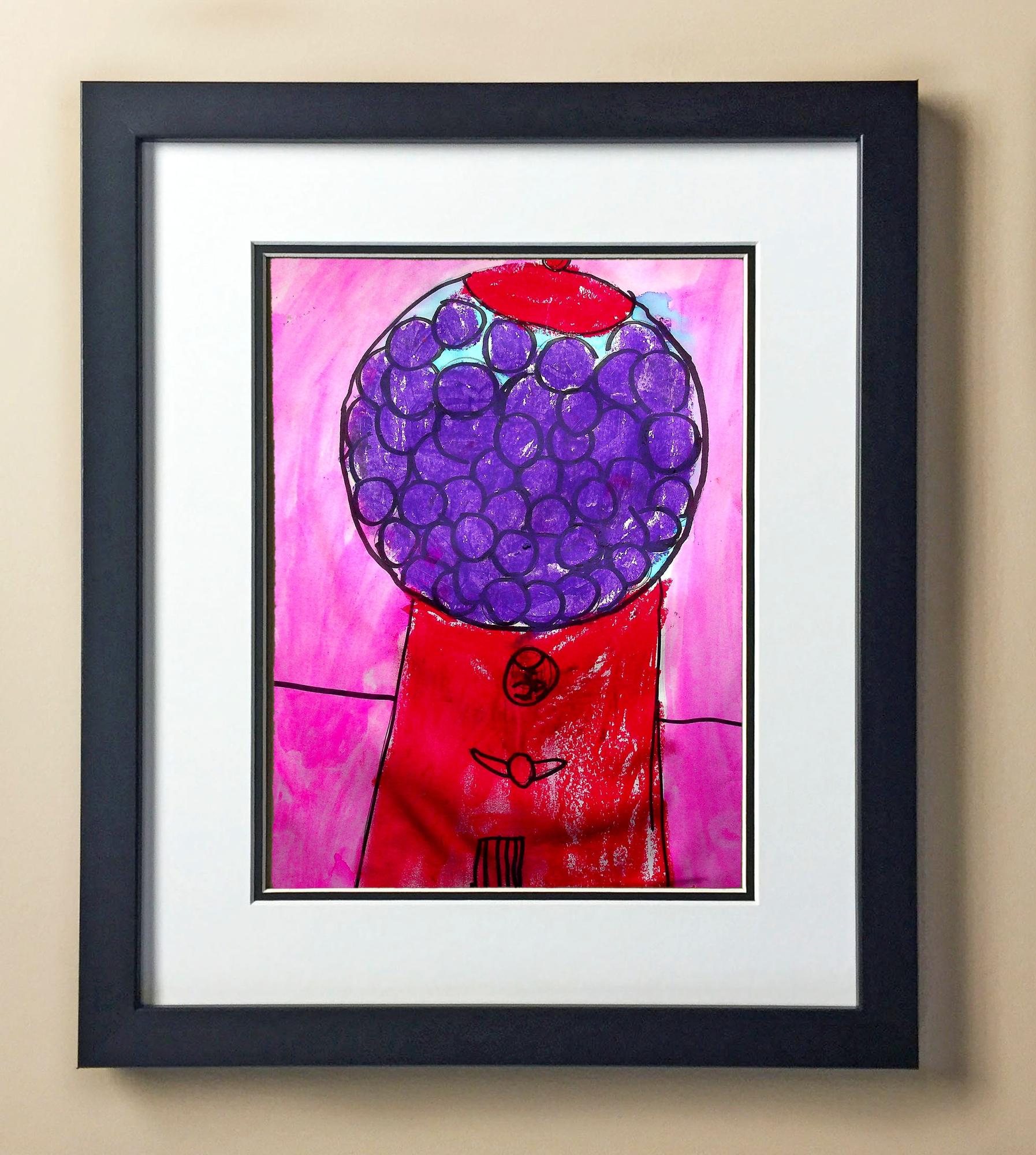 Included with the purchase is the Students Artwork, Frame, double matboard, shatter proof plexiglass, and a ready to hang backerboard with turnbuttons