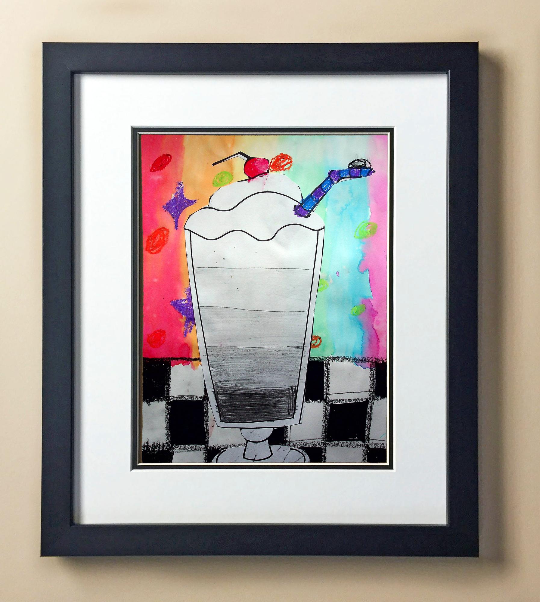 Included with the purchase is the Students Artwork, Frame, double matboard, shatter proof plexiglass, and a ready to hang backerboard with turnbuttons