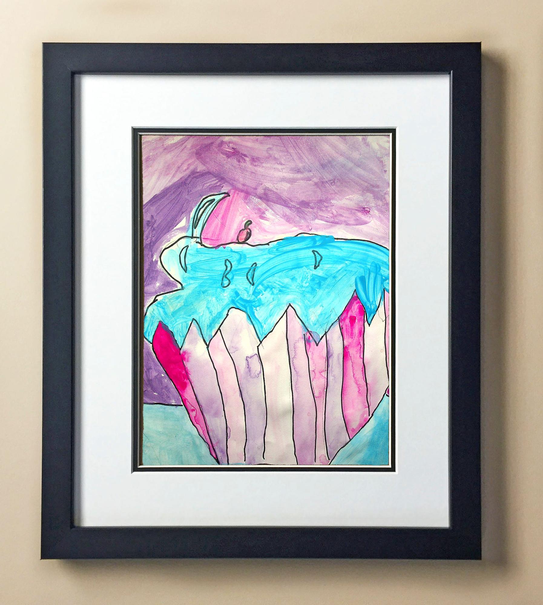 Included with the purchase is the Students Artwork, Frame, double matboard, shatter proof plexiglass, and a ready to hang backerboard with turnbuttons