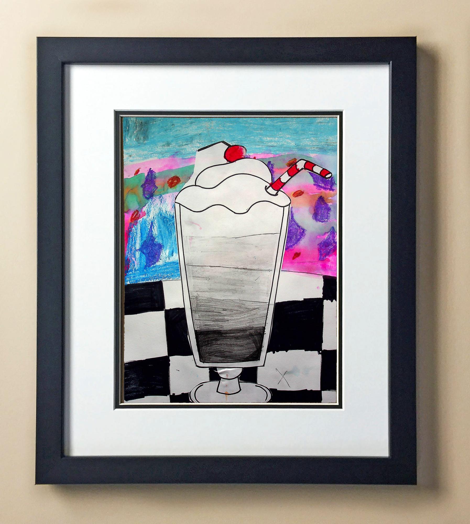 Included with the purchase is the Students Artwork, Frame, double matboard, shatter proof plexiglass, and a ready to hang backerboard with turnbuttons