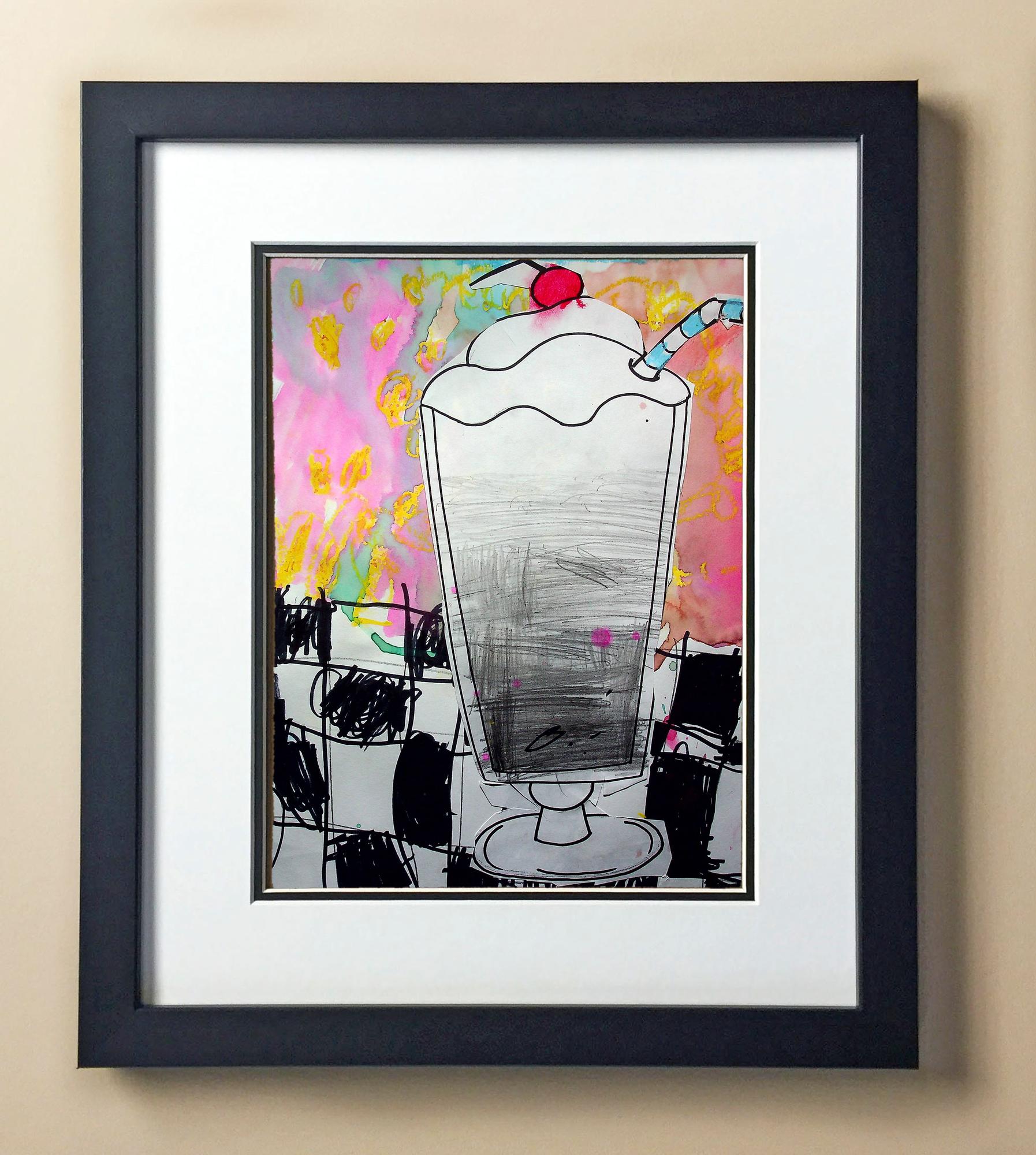 Included with the purchase is the Students Artwork, Frame, double matboard, shatter proof plexiglass, and a ready to hang backerboard with turnbuttons