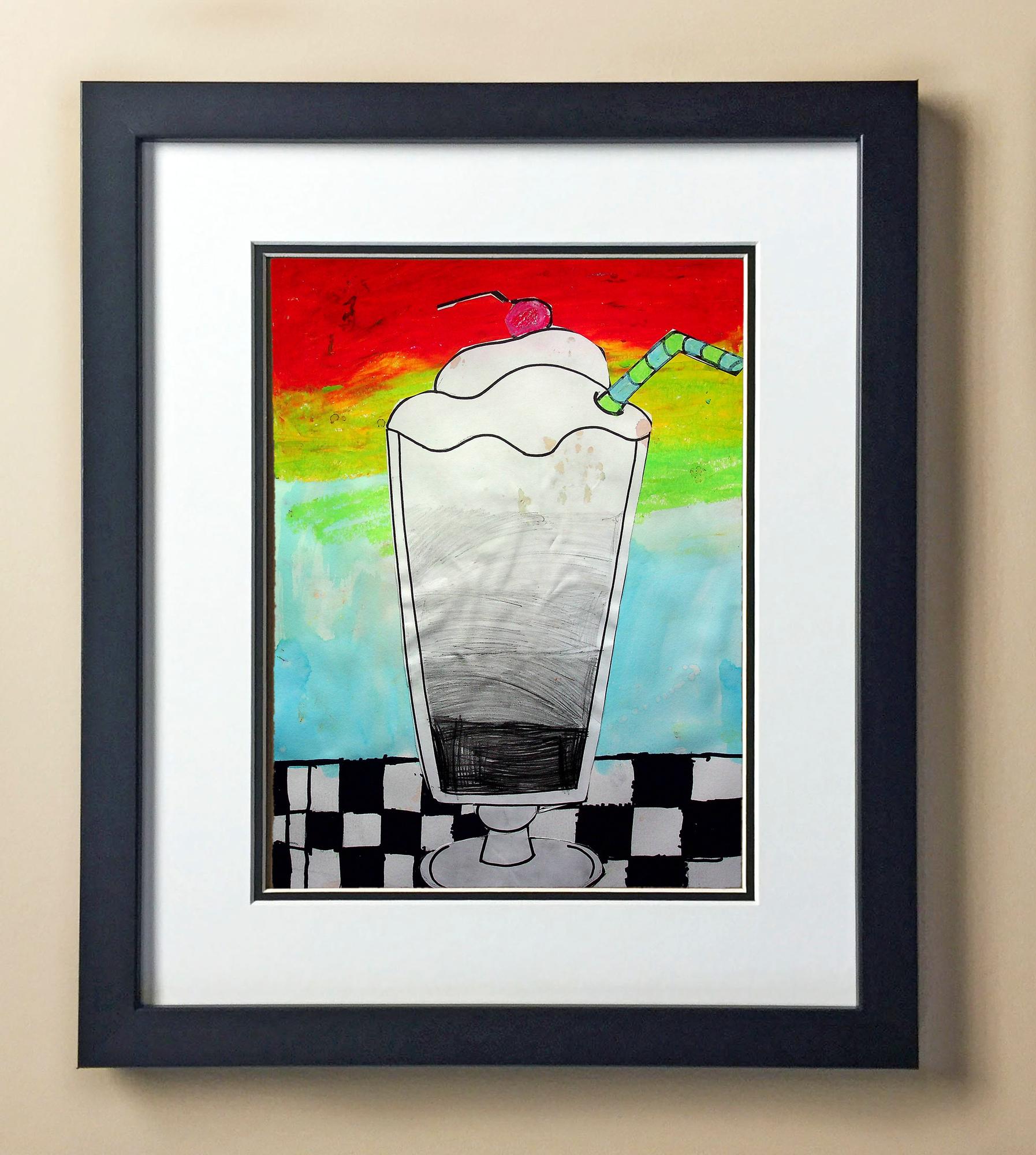 Included with the purchase is the Students Artwork, Frame, double matboard, shatter proof plexiglass, and a ready to hang backerboard with turnbuttons