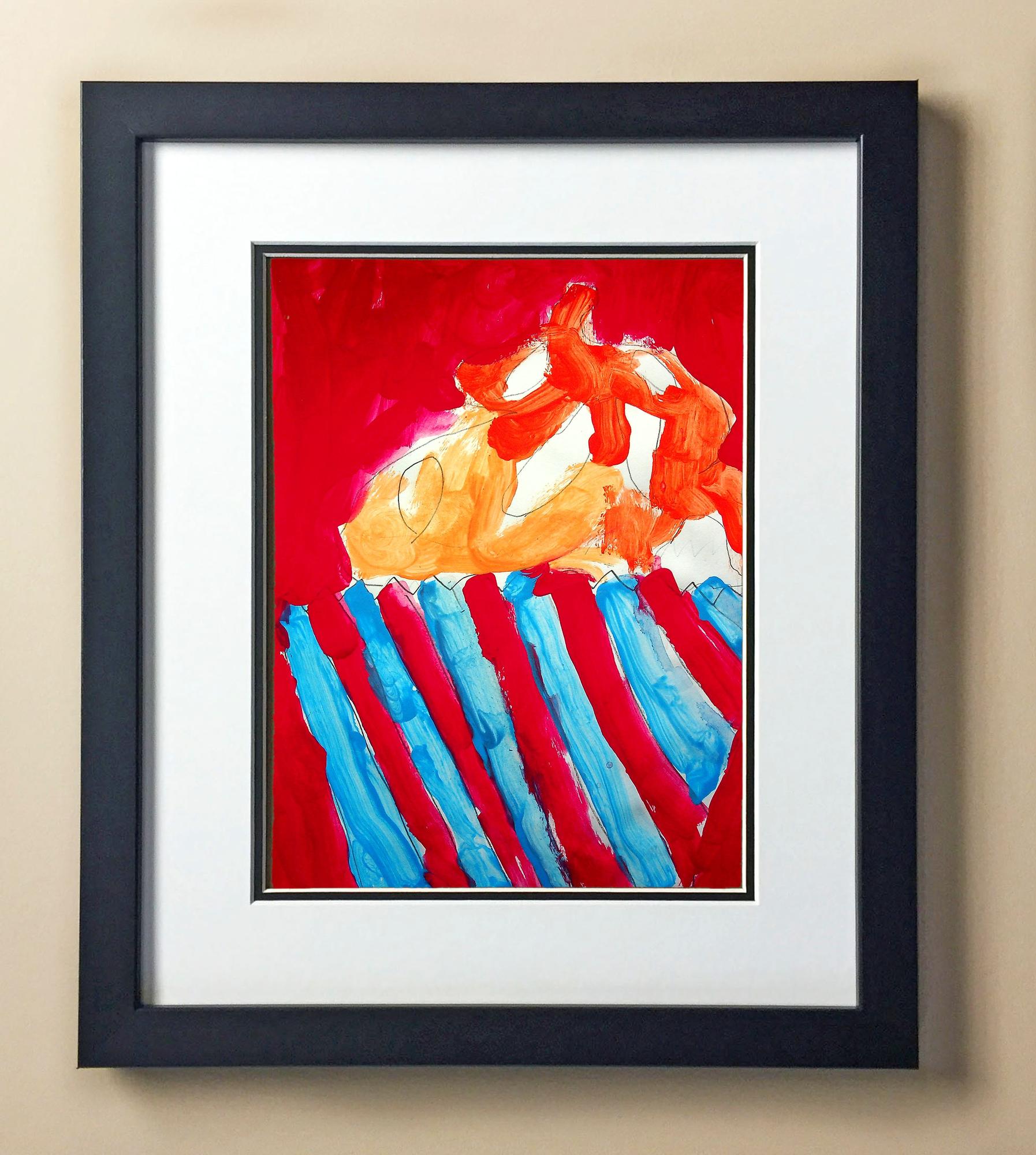 Included with the purchase is the Students Artwork, Frame, double matboard, shatter proof plexiglass, and a ready to hang backerboard with turnbuttons