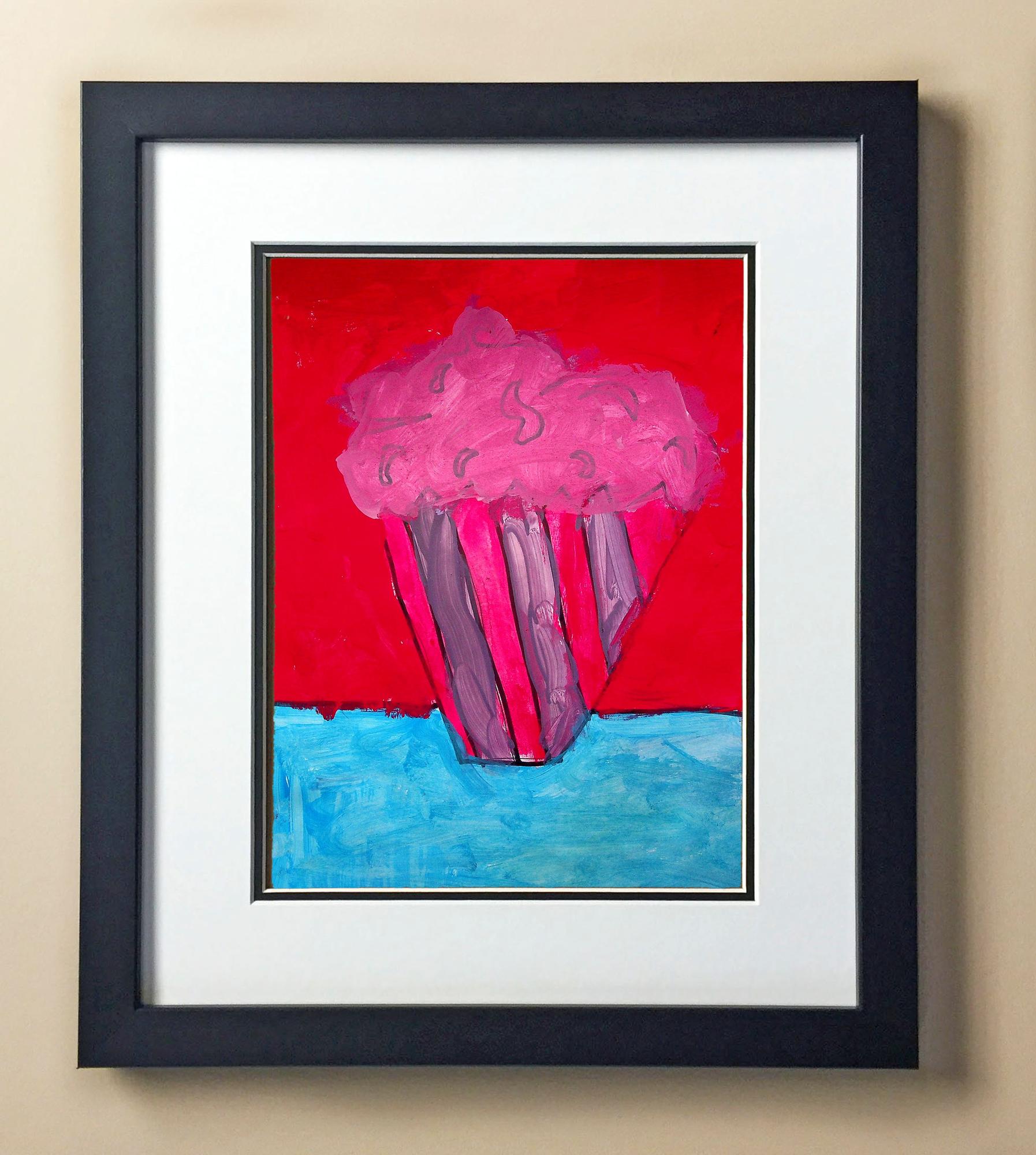 Included with the purchase is the Students Artwork, Frame, double matboard, shatter proof plexiglass, and a ready to hang backerboard with turnbuttons