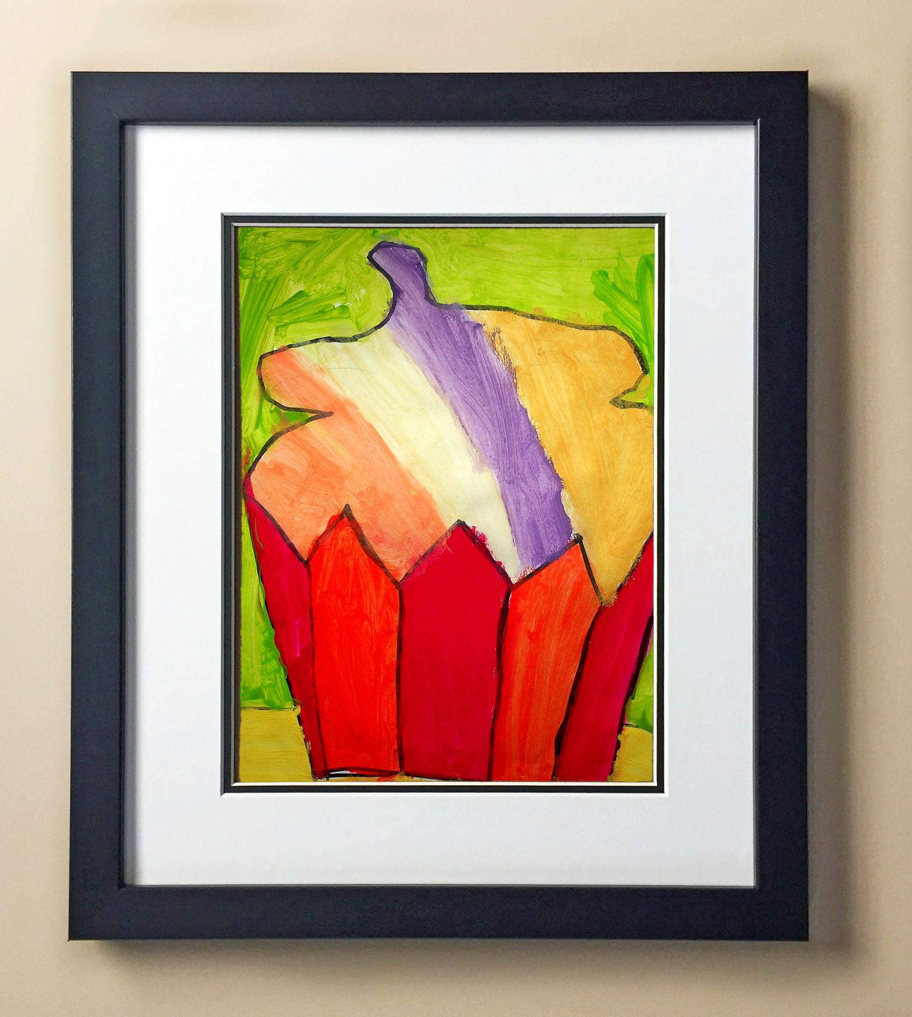 Included with the purchase is the Students Artwork, Frame, double matboard, shatter proof plexiglass, and a ready to hang backerboard with turnbuttons
