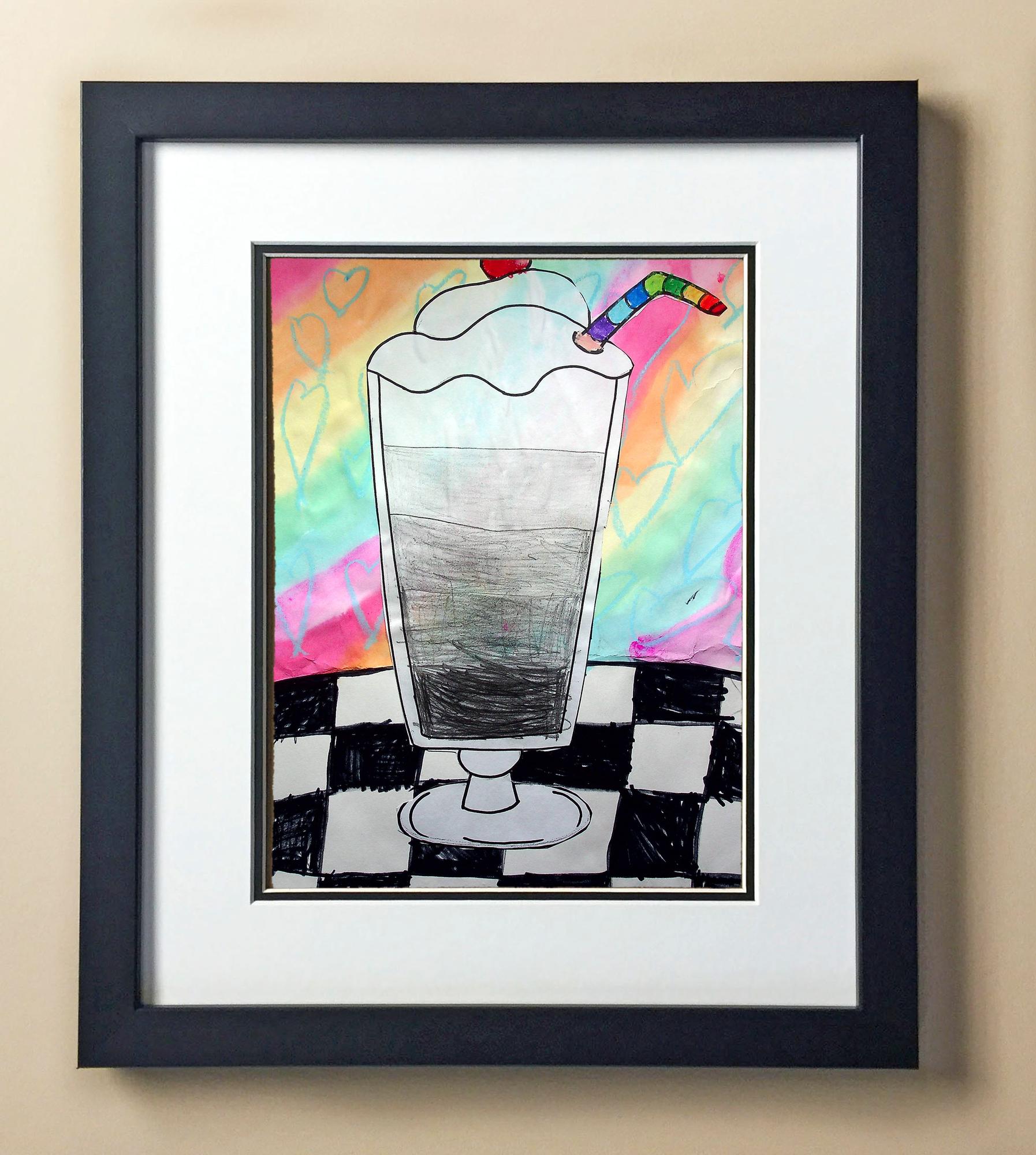 Included with the purchase is the Students Artwork, Frame, double matboard, shatter proof plexiglass, and a ready to hang backerboard with turnbuttons