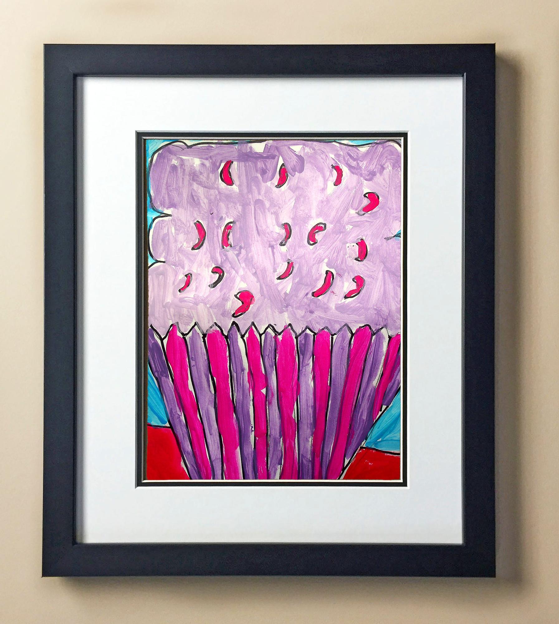 Included with the purchase is the Students Artwork, Frame, double matboard, shatter proof plexiglass, and a ready to hang backerboard with turnbuttons