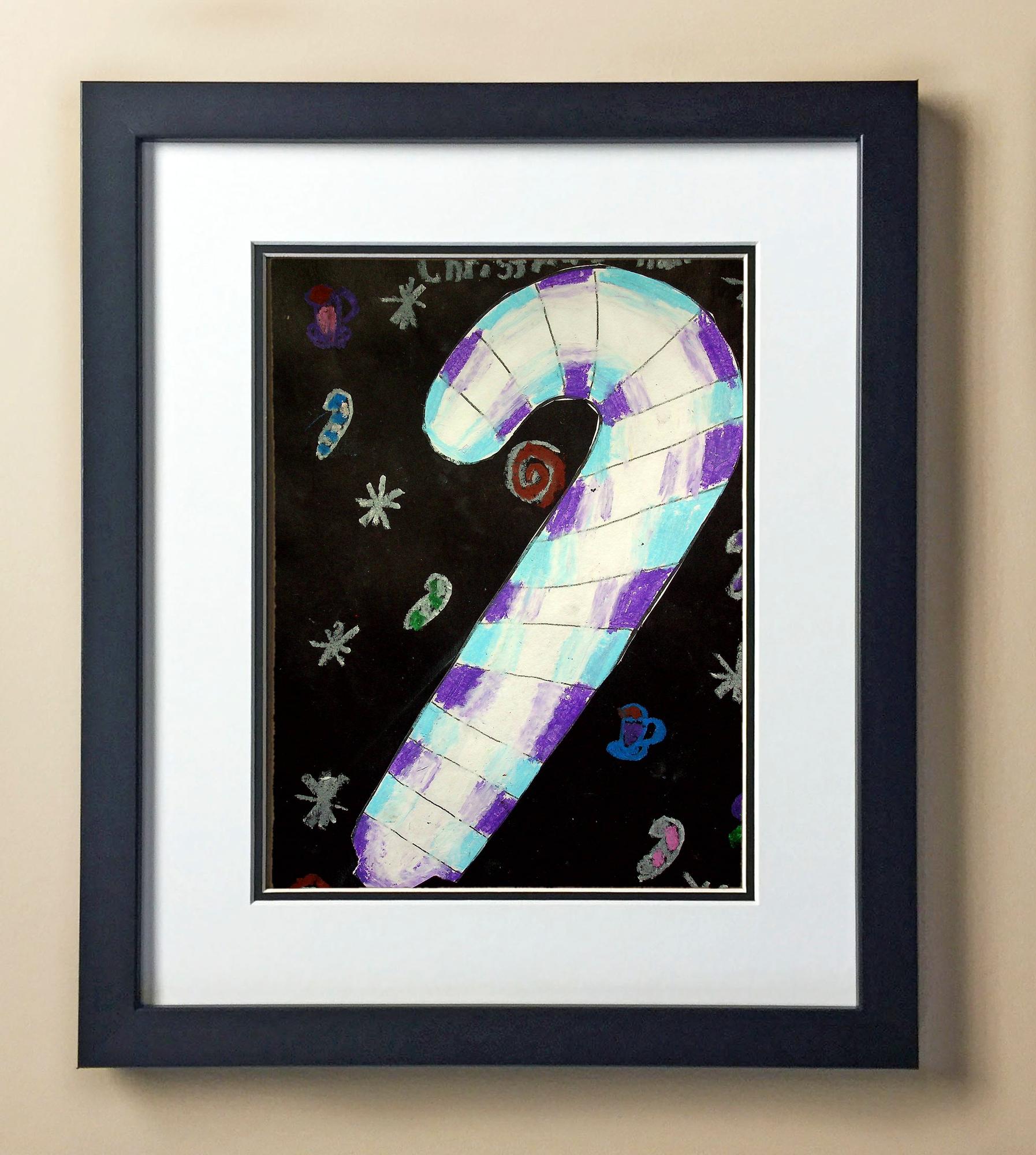 Included with the purchase is the Students Artwork, Frame, double matboard, shatter proof plexiglass, and a ready to hang backerboard with turnbuttons