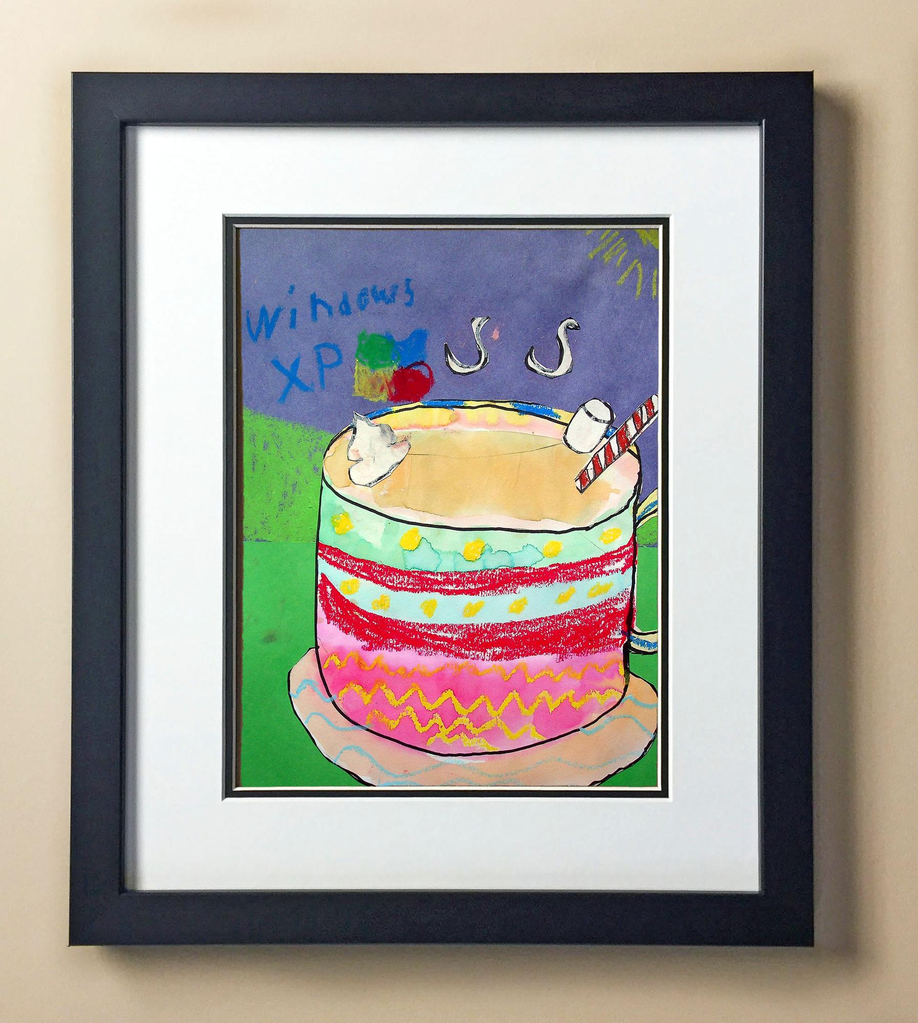 Included with the purchase is the Students Artwork, Frame, double matboard, shatter proof plexiglass, and a ready to hang backerboard with turnbuttons