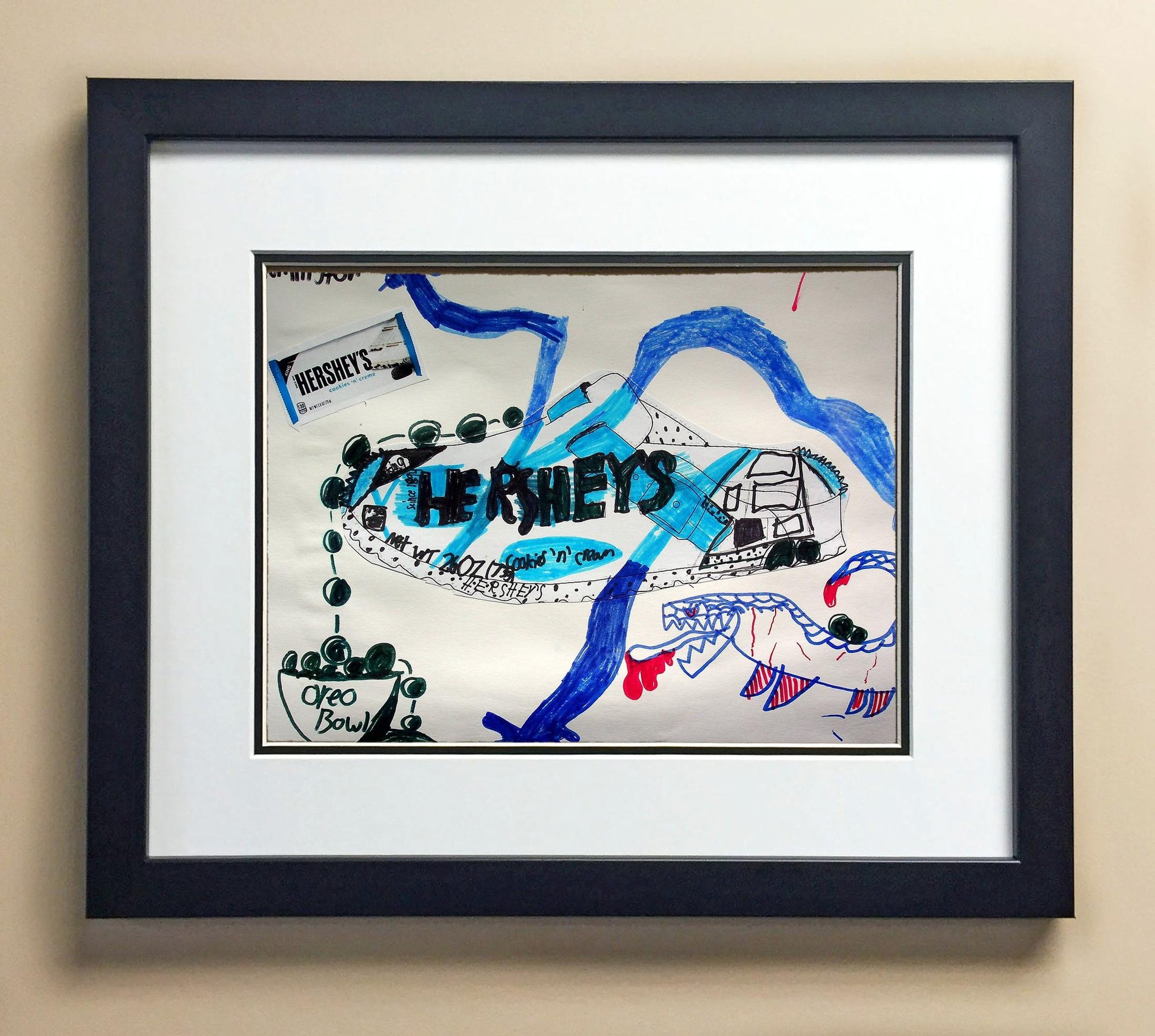 Included with the purchase is the Students Artwork, Frame, double matboard, shatter proof plexiglass, and a ready to hang backerboard with turnbuttons