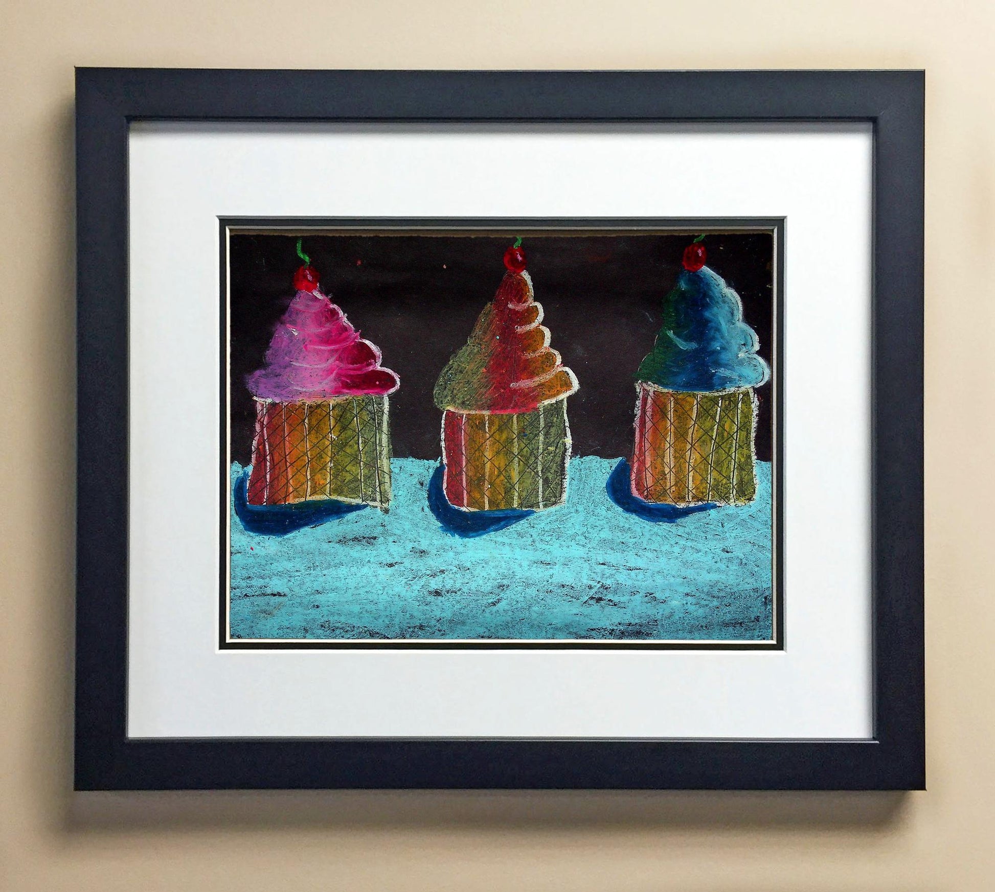 Included with the purchase is the Students Artwork, Frame, double matboard, shatter proof plexiglass, and a ready to hang backerboard with turnbuttons