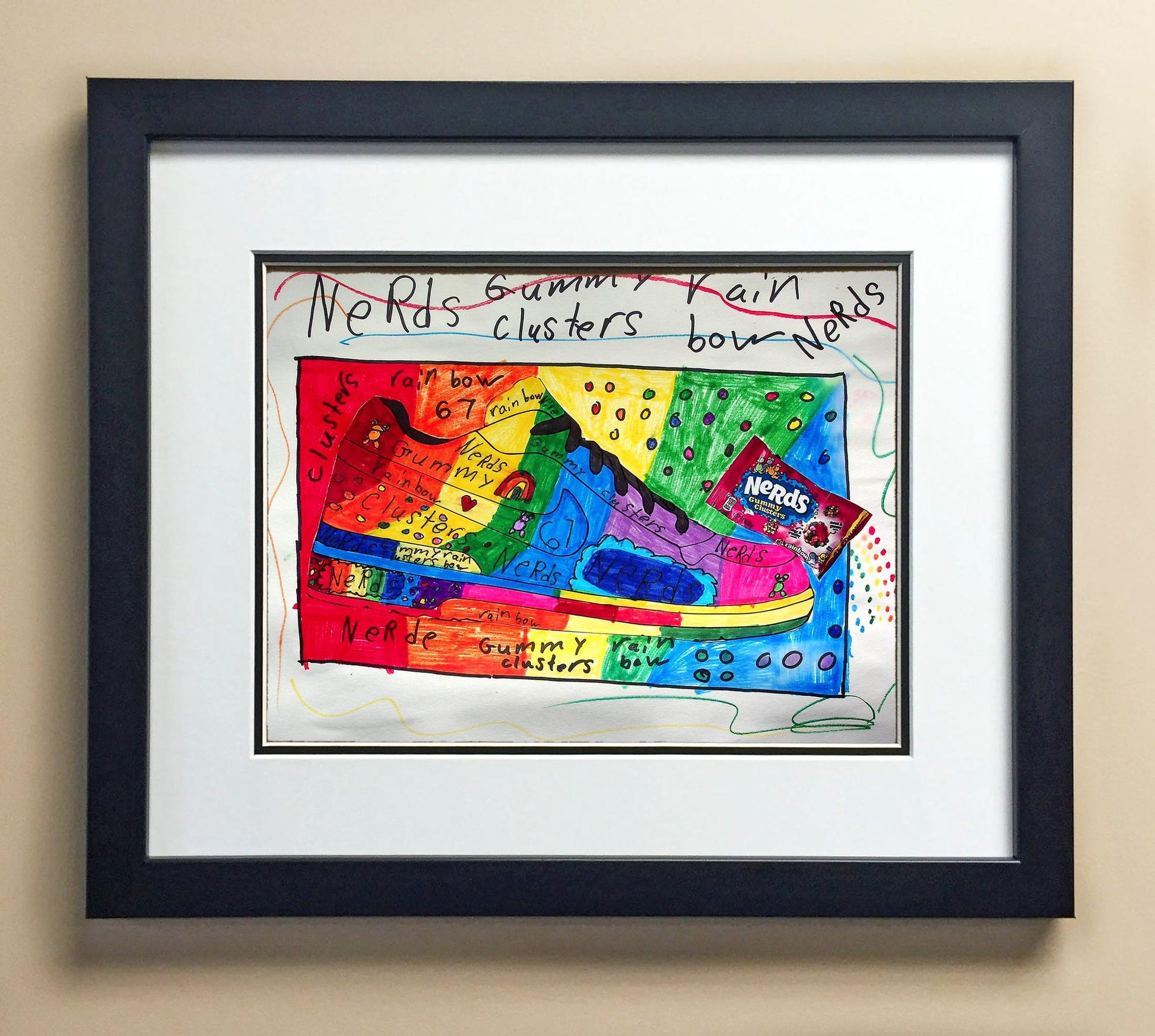 Included with the purchase is the Students Artwork, Frame, double matboard, shatter proof plexiglass, and a ready to hang backerboard with turnbuttons