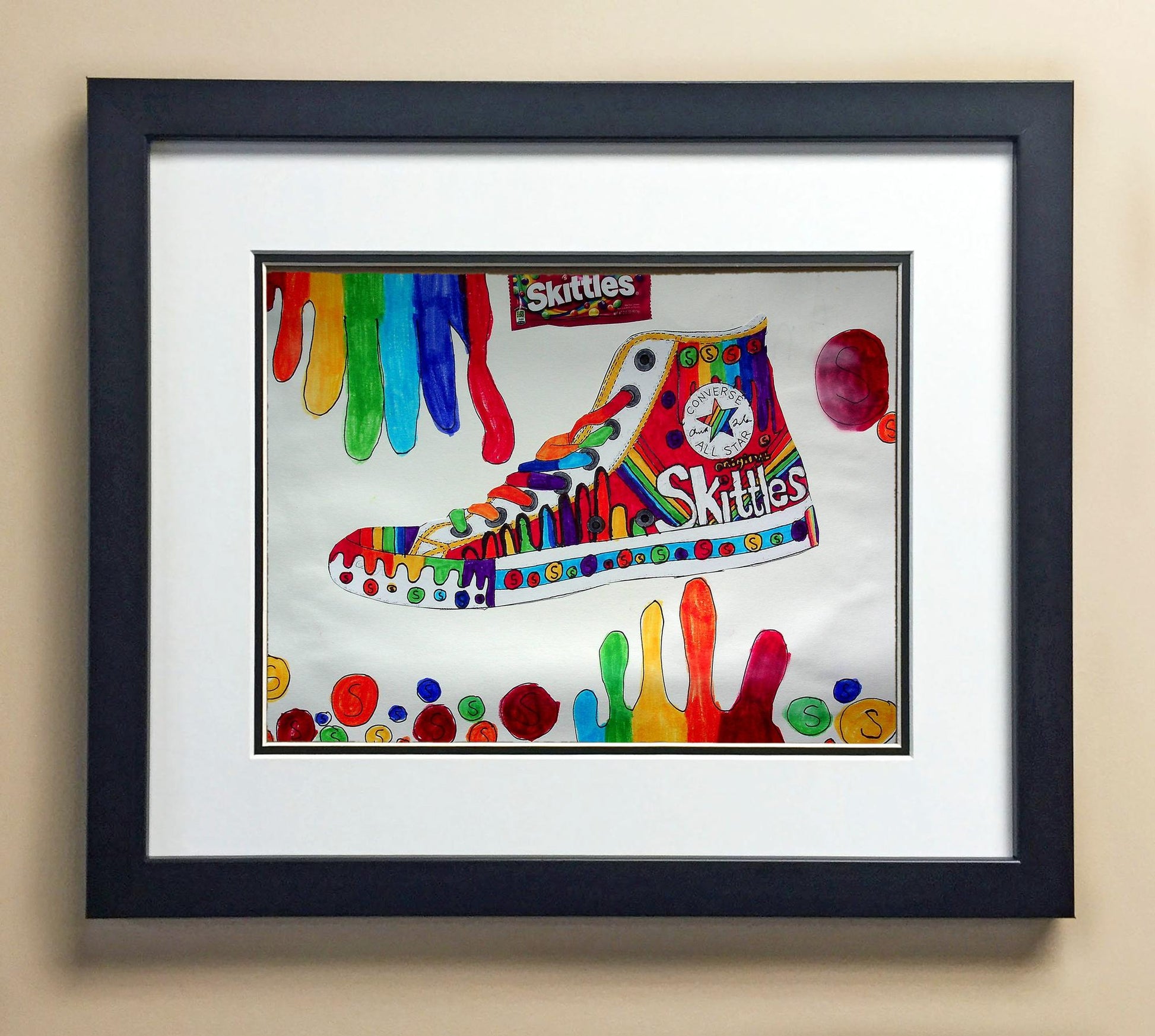 Included with the purchase is the Students Artwork, Frame, double matboard, shatter proof plexiglass, and a ready to hang backerboard with turnbuttons