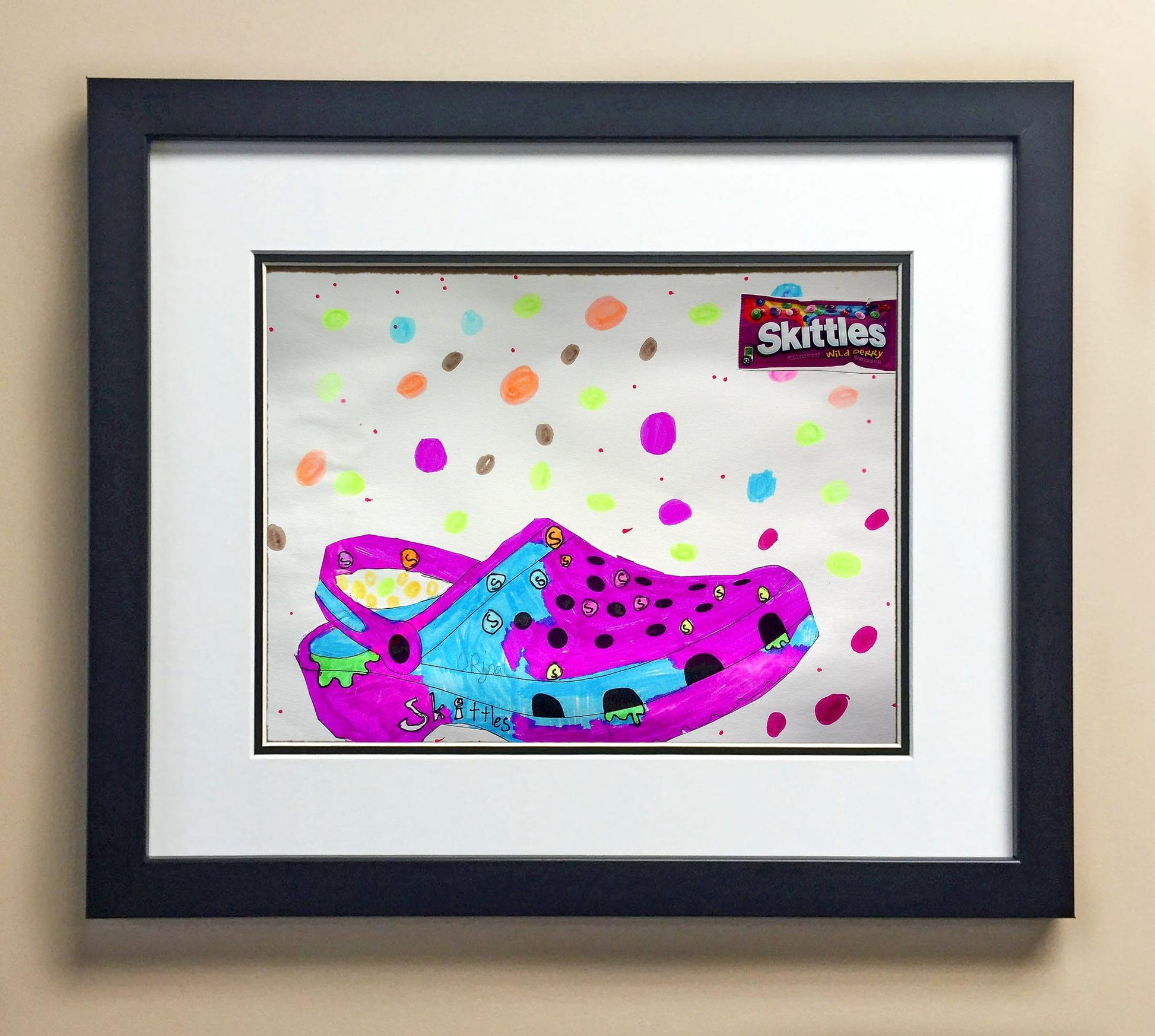Included with the purchase is the Students Artwork, Frame, double matboard, shatter proof plexiglass, and a ready to hang backerboard with turnbuttons
