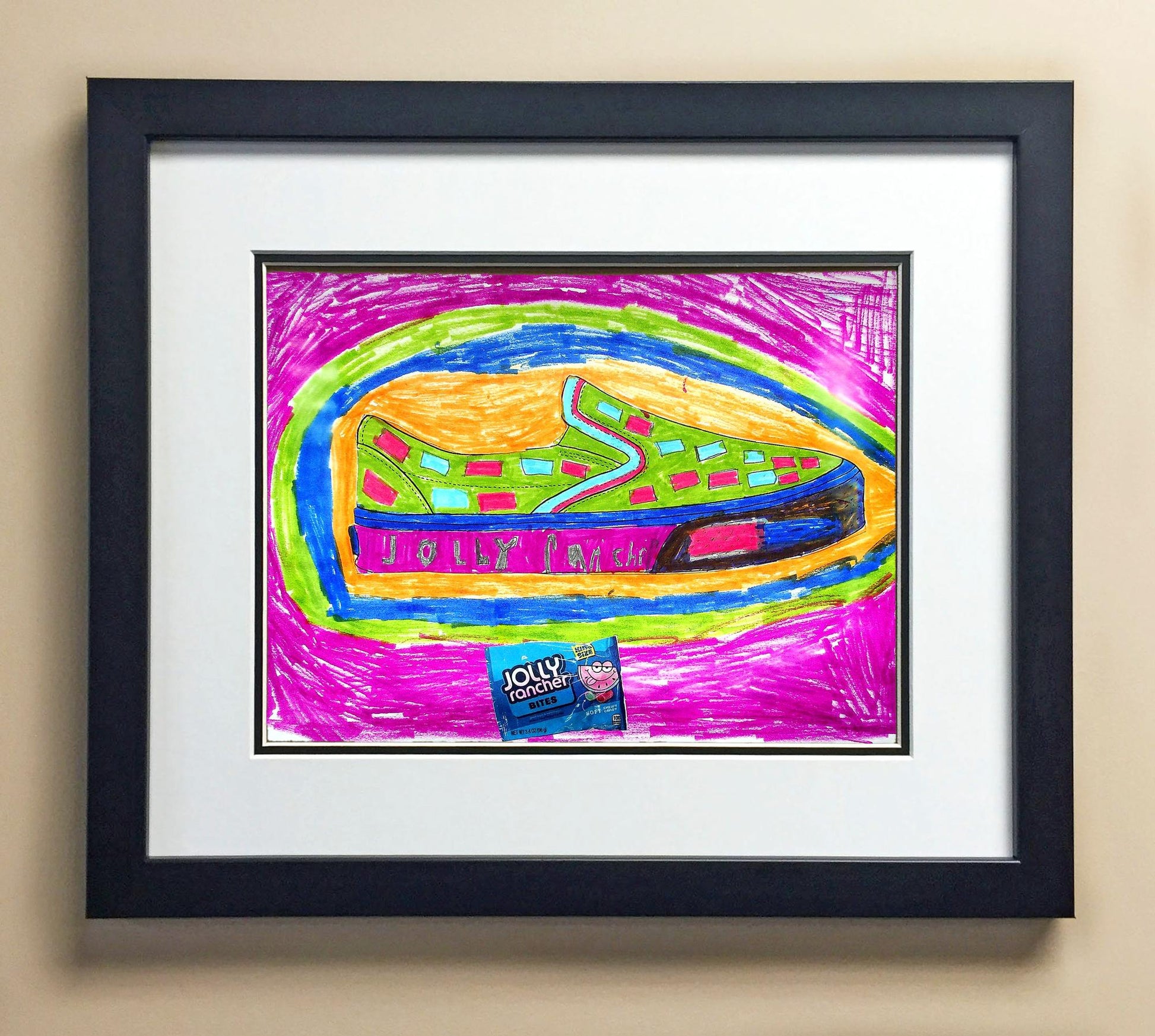 Included with the purchase is the Students Artwork, Frame, double matboard, shatter proof plexiglass, and a ready to hang backerboard with turnbuttons