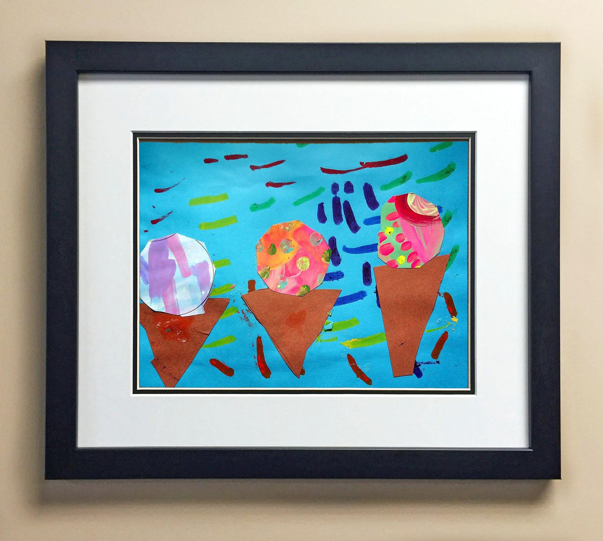 Included with the purchase is the Students Artwork, Frame, double matboard, shatter proof plexiglass, and a ready to hang backerboard with turnbuttons