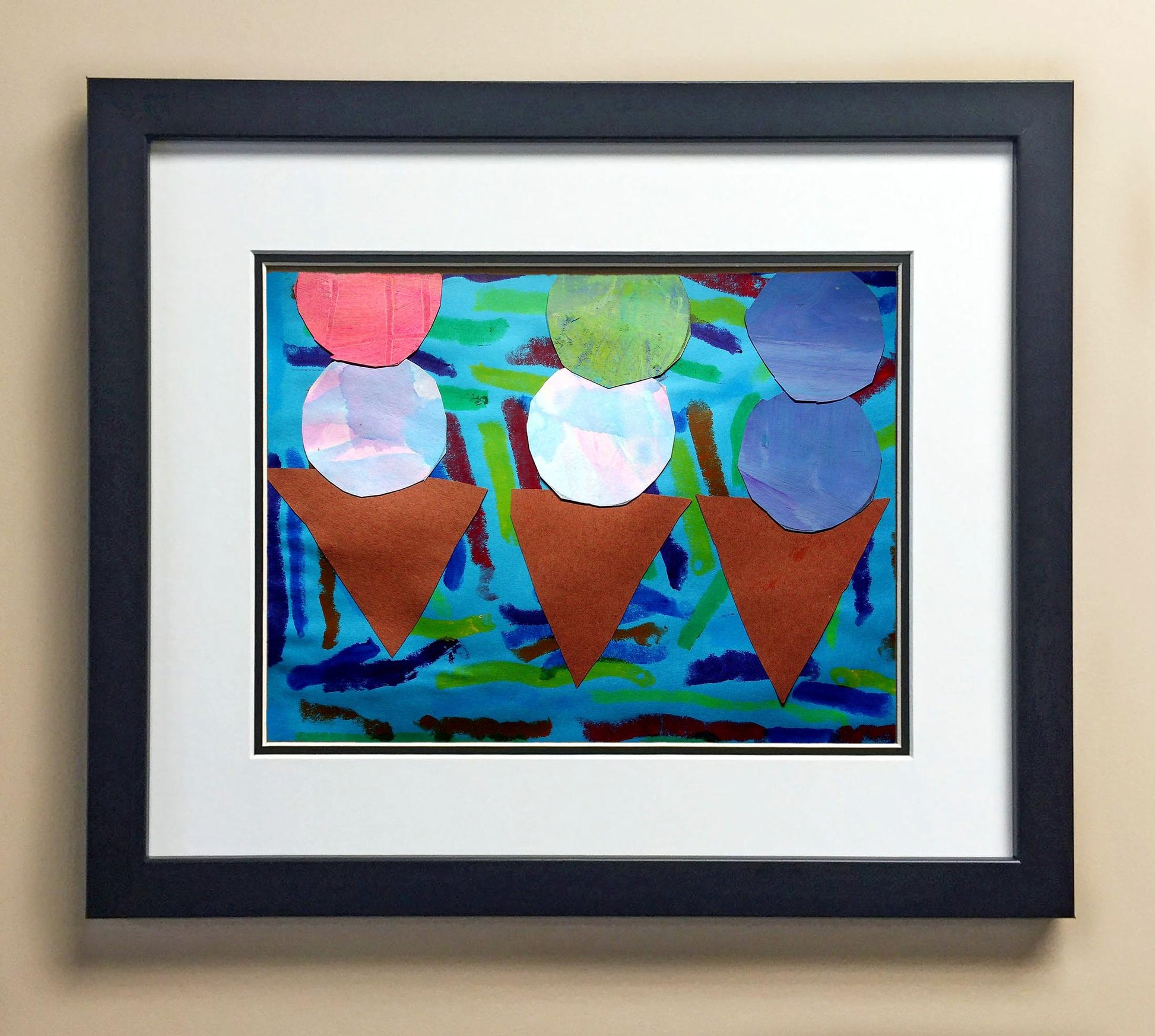 Included with the purchase is the Students Artwork, Frame, double matboard, shatter proof plexiglass, and a ready to hang backerboard with turnbuttons