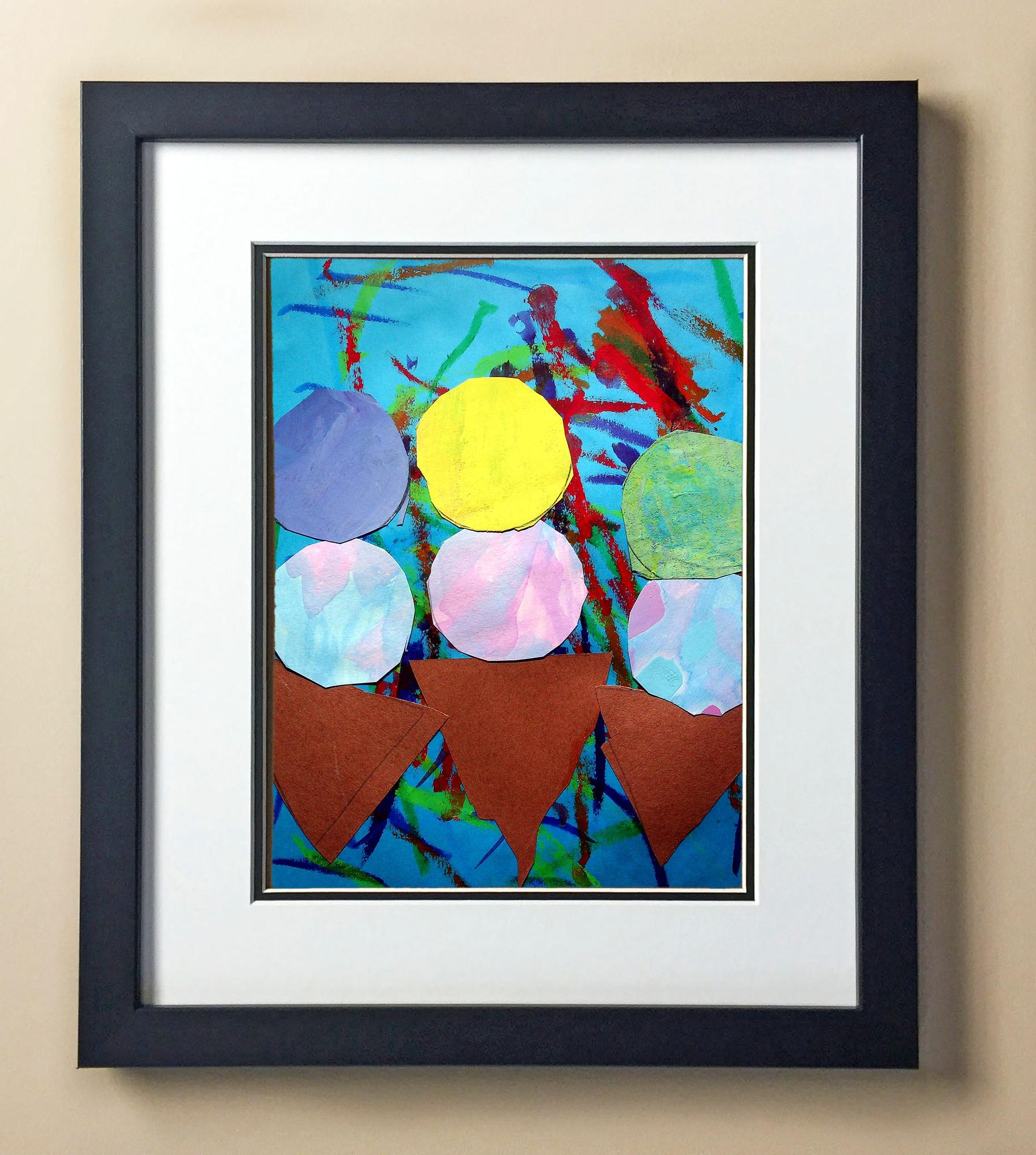 Included with the purchase is the Students Artwork, Frame, double matboard, shatter proof plexiglass, and a ready to hang backerboard with turnbuttons
