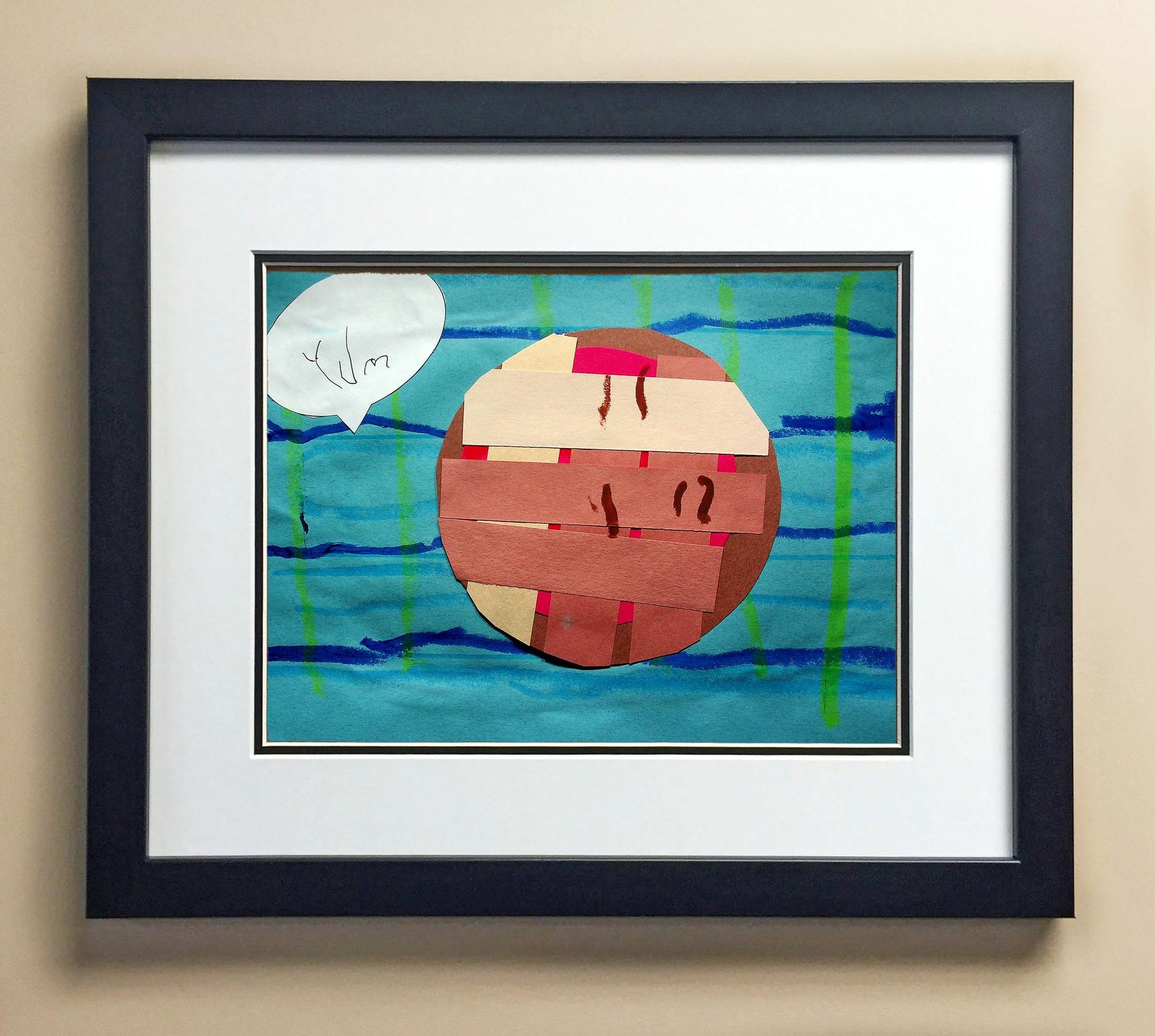 Included with the purchase is the Students Artwork, Frame, double matboard, shatter proof plexiglass, and a ready to hang backerboard with turnbuttons