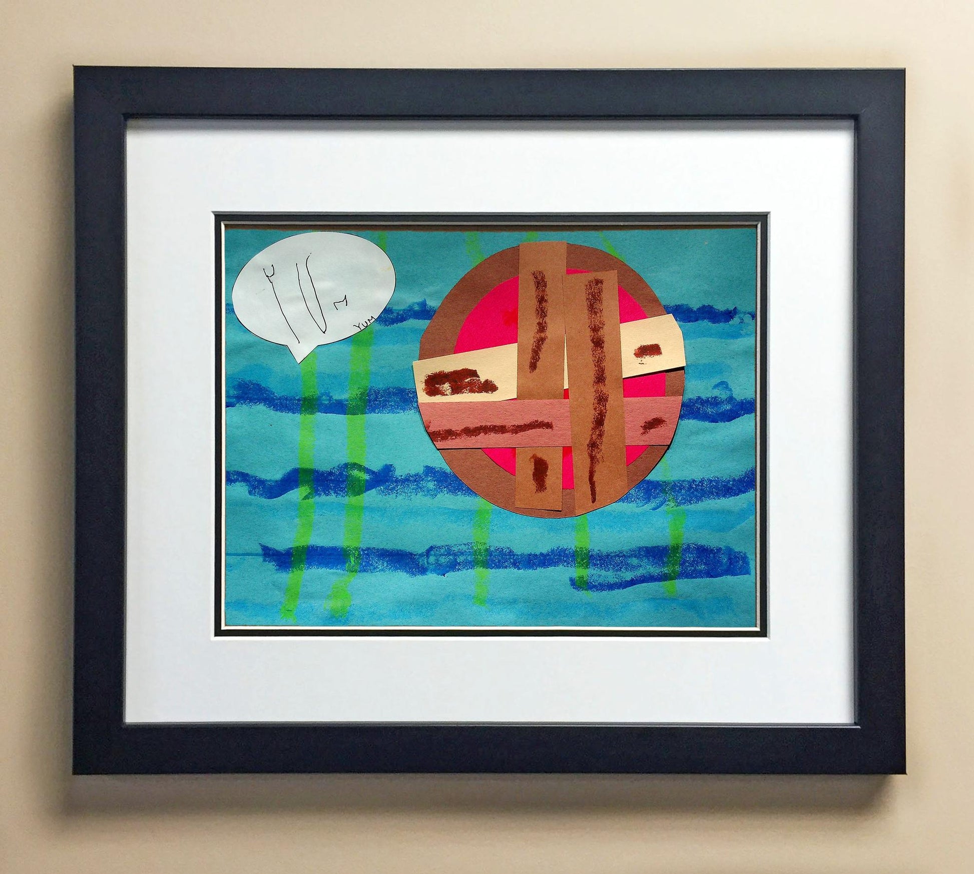 Included with the purchase is the Students Artwork, Frame, double matboard, shatter proof plexiglass, and a ready to hang backerboard with turnbuttons