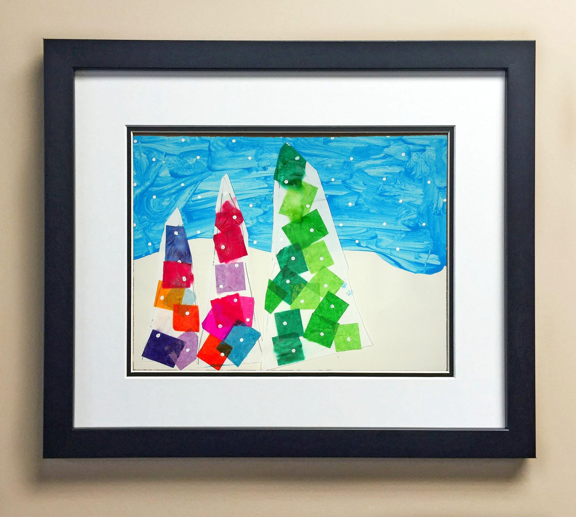 Included with the purchase is the Students Artwork, Frame, double matboard, shatter proof plexiglass, and a ready to hang backerboard with turnbuttons