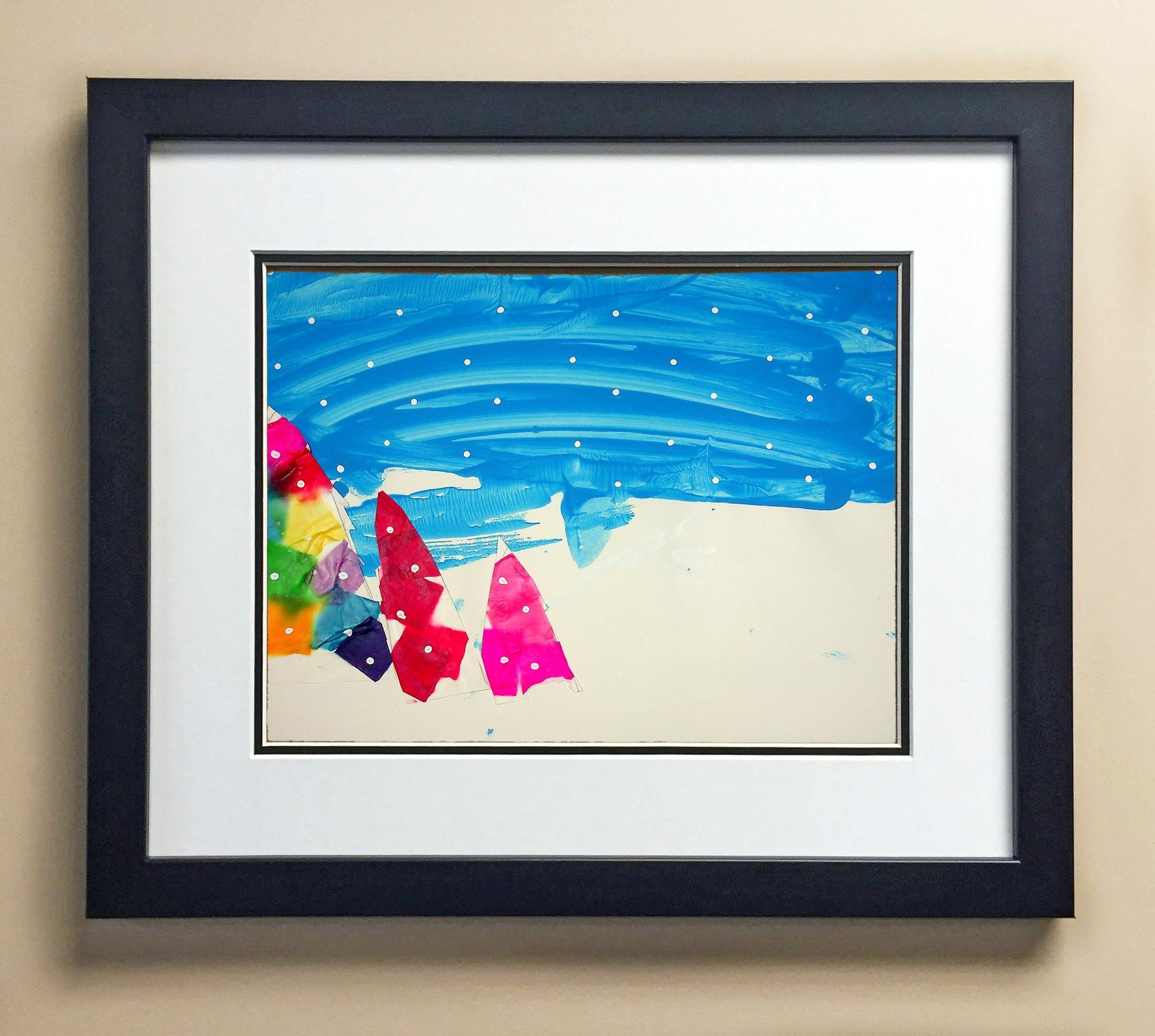 Included with the purchase is the Students Artwork, Frame, double matboard, shatter proof plexiglass, and a ready to hang backerboard with turnbuttons