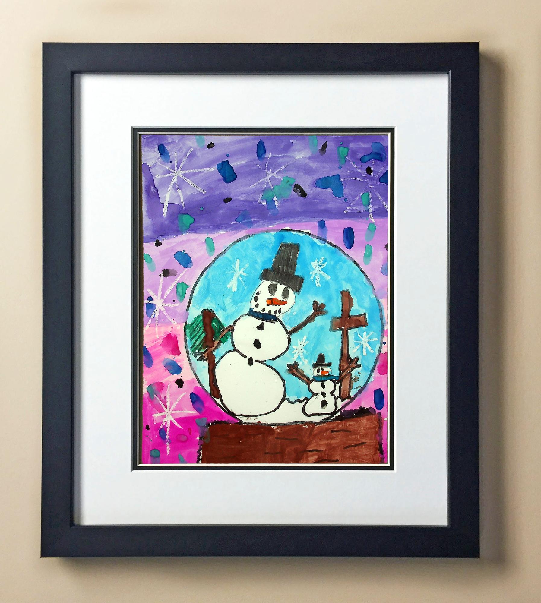 Included with the purchase is the Students Artwork, Frame, double matboard, shatter proof plexiglass, and a ready to hang backerboard with turnbuttons